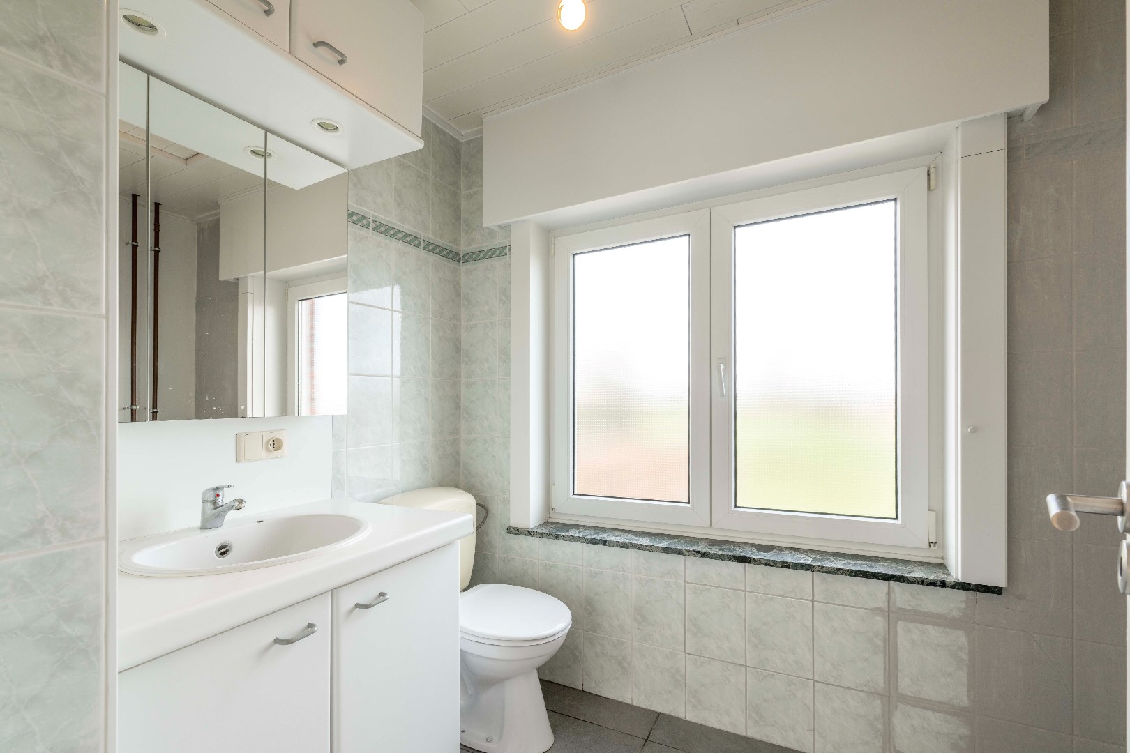Tot slot kan U via het zolderluik naar de geïsoleerde zolder die dienst kan doen als stockageruimte.