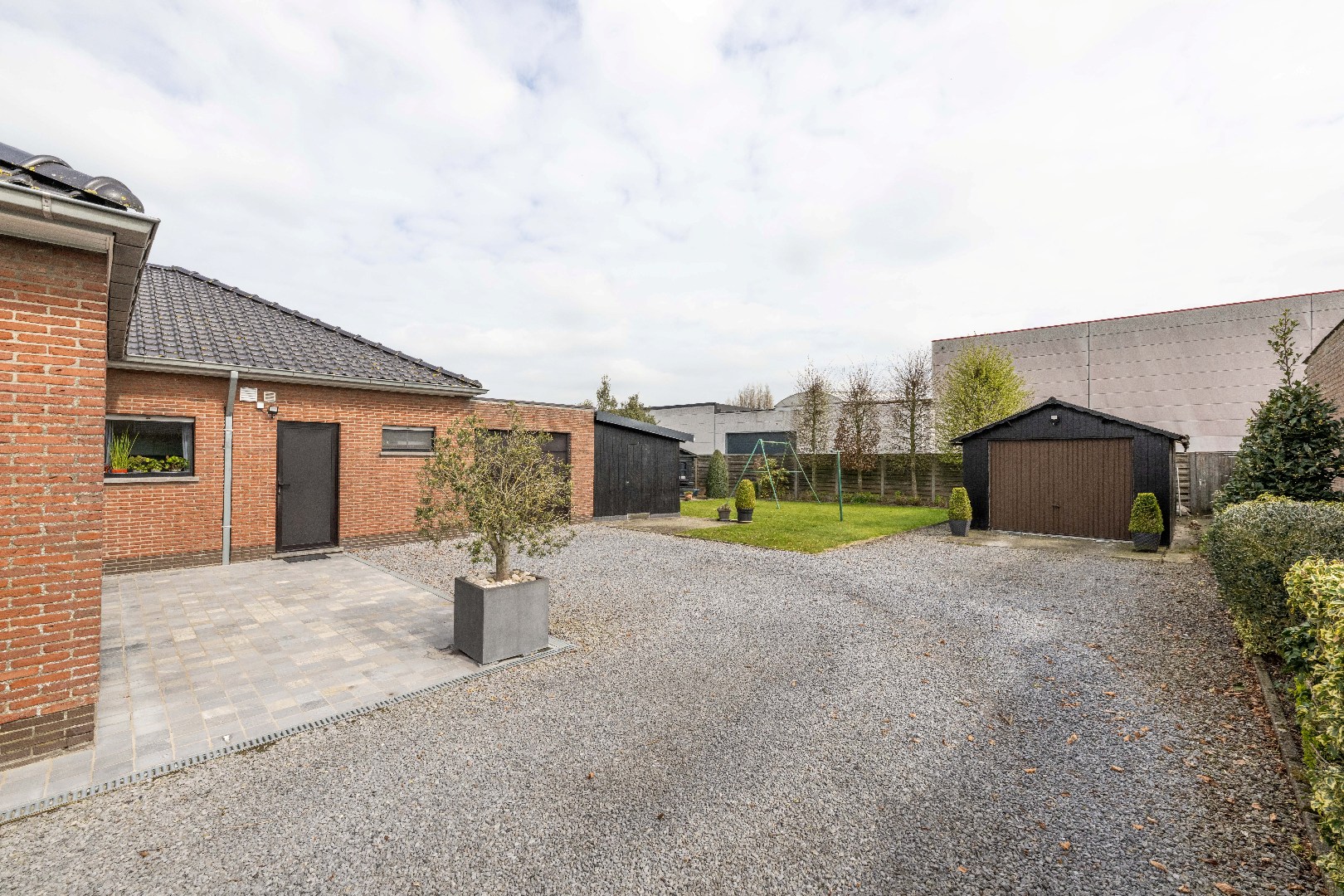 De woning beschikt over een ruime tuin met tuinberging. Op het perceel zelf is er voldoende parkeergelegenheid voorzien alsook nog een tweede vrijstaande garage (30 m²).