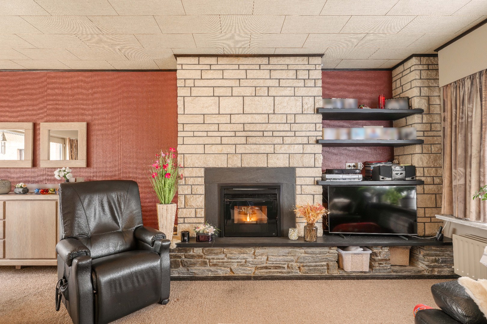U komt de woning binnen via de inkomhal met gastentoilet en ingemaakte vestiaire kast. Aansluitend bereikt u de lichtrijke leefruimte, bestaande uit een gezellige zit- en eethoek met ingebouwde pelletkachel. Verder beschikt de woning over een volledig gerenoveerde (2020) en ingerichte keuken (kookplaat | dampkap | spoelbak | oven | frigo | vaatwasser) met praktische achterinkom en berging. Via de nachthal heeft u toegang tot drie volwaardige slaapkamers. Twee slaapkamers beschikken over ingebouwde kastenwanden. De vernieuwde (2020) badkamer, is uitgerust met een lavabo met meubel, douche, ligbad en hangtoilet. Op het gelijkvloers bevindt zich tevens de inpandige garage met geautomatiseerde geïsoleerde poort. Tot slot is er nog een geïsoleerde zolderruimte (betonconstructie), bereikbaar via een vouwtrap.