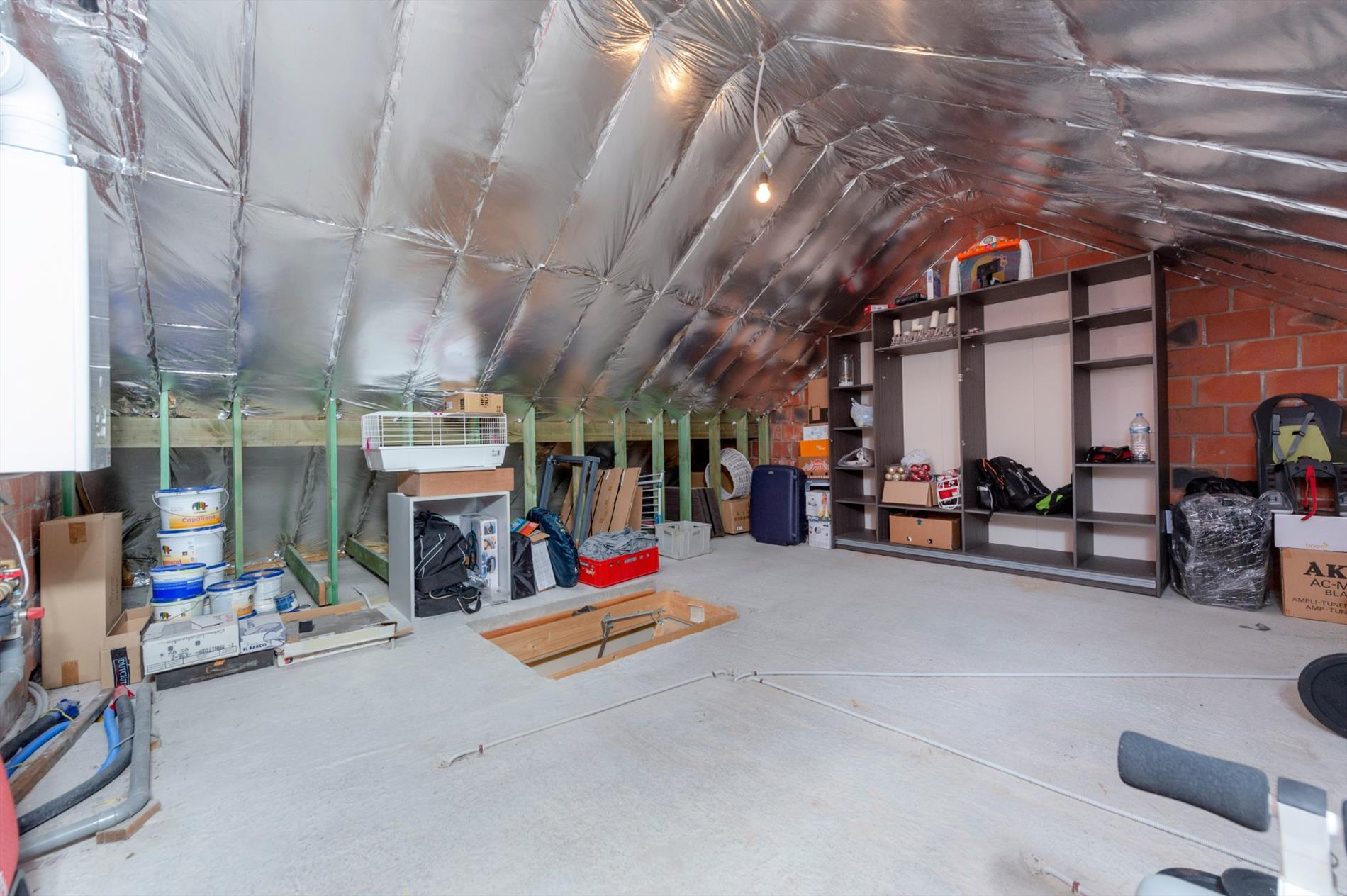 De zolder is toegankelijk via een vouwtrap en is verrassend ruim!