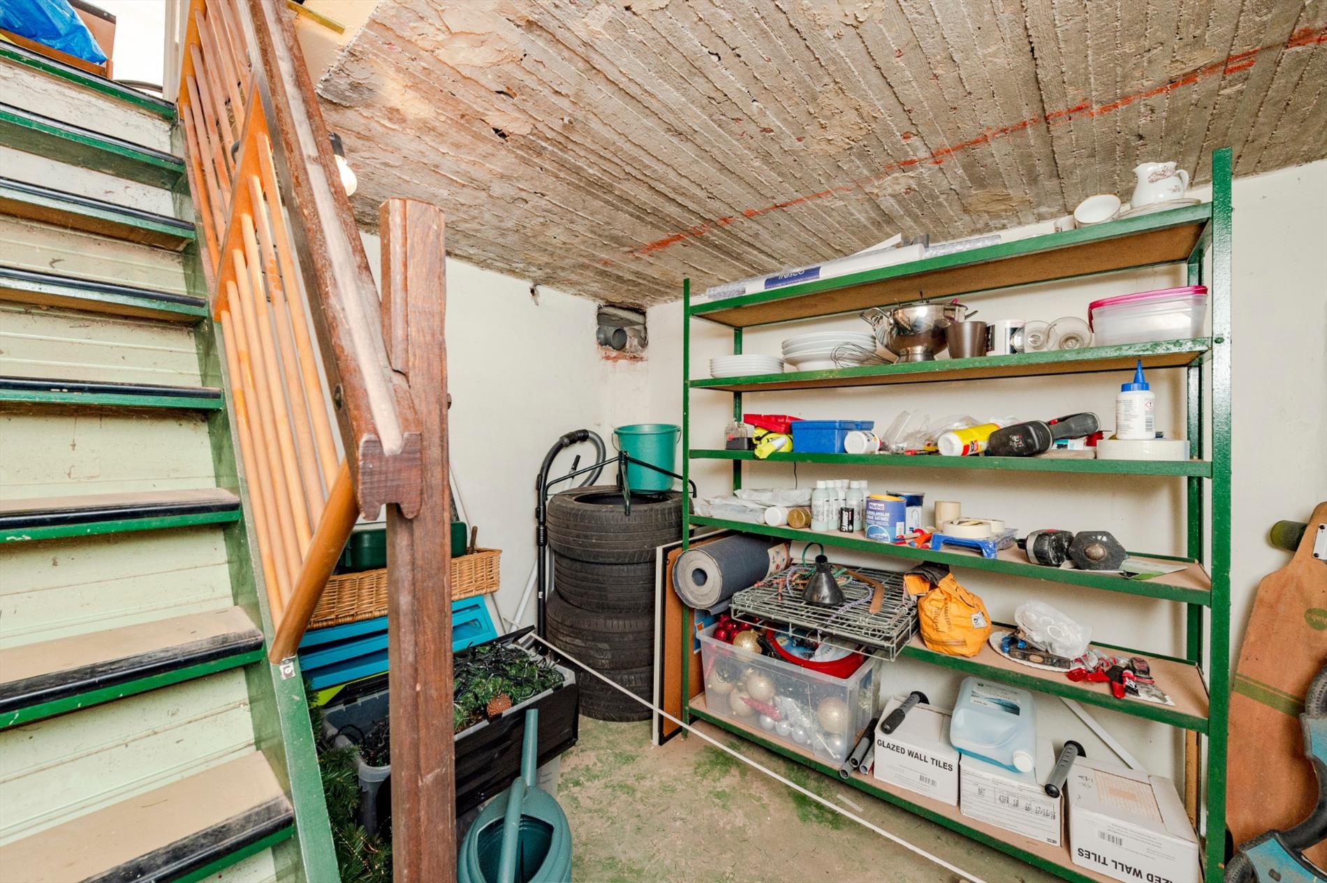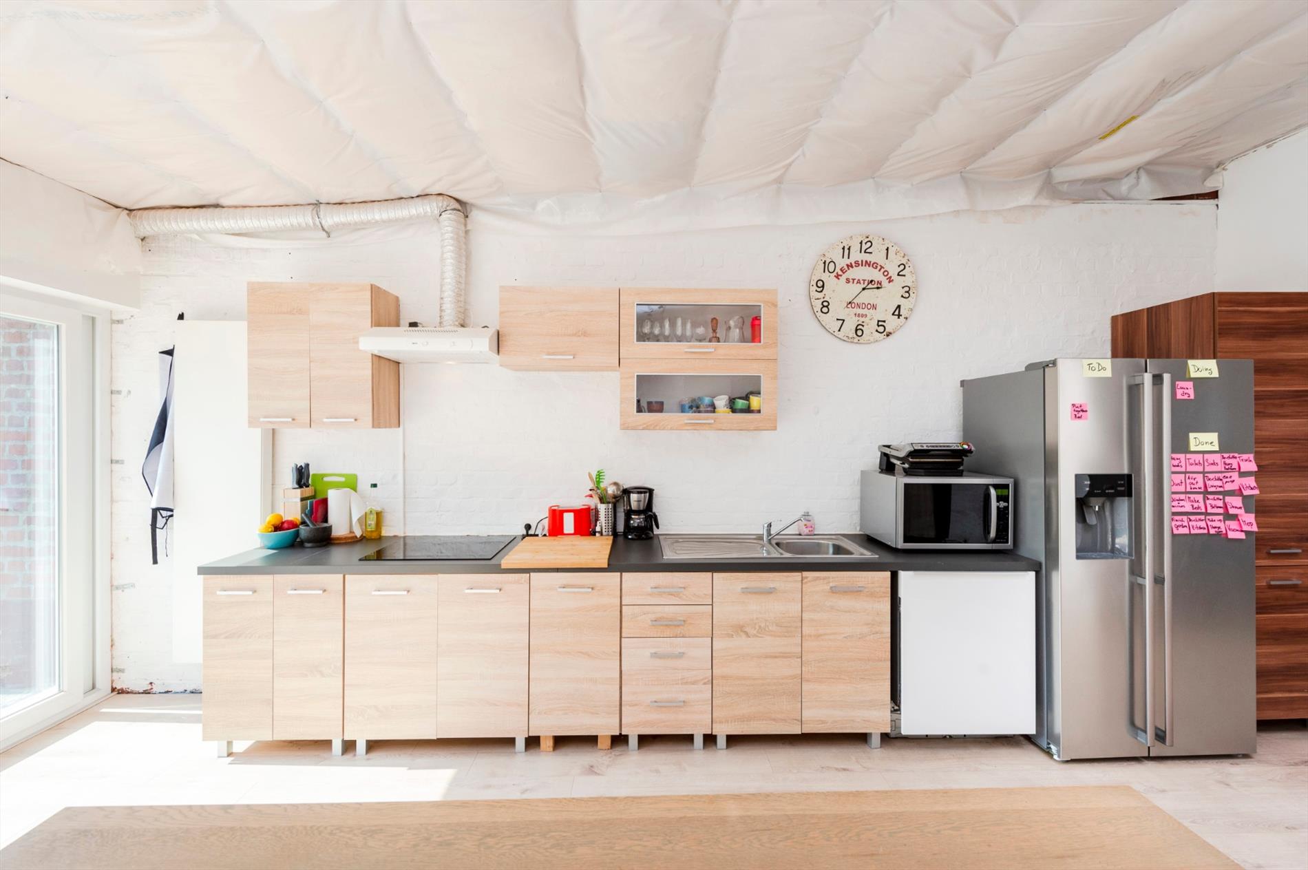 U komt binnen via een inkomhall dit met directe toegang tot de open leefruimte met aan de voorgevel een bureaugedeelte, tussenin een gezellige zithoek alsook de open keuken achteraan. De achtergevel bestaat uit een grote glaspartij zodoende geniet U volop van het licht en de zon! De keuken heeft een direct contact met de berging/droge kelder (8 m²). Op het gelijkvloers is tevens een gastentoilet aanwezig.