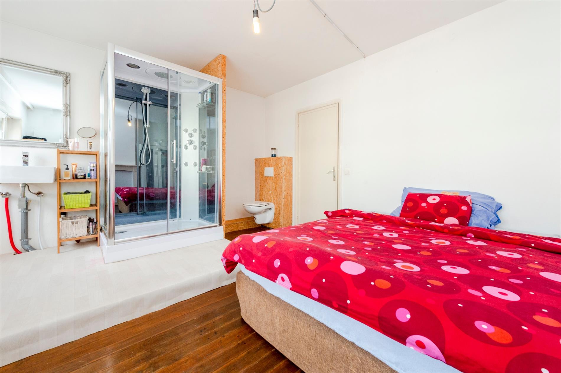Het verdiep (authentieke plankenvloeren) omvat twee slaapkamers alsook badkamer (douche | lavabo | toilet | aansluitingen wasmachine en droogkast). De scheidingsmuur tussen badkamer en slaapkamer dient nog opgetrokken te worden. Het tweede verdiep omvat 2 kleinere slaapkamers alsook bergruimte.