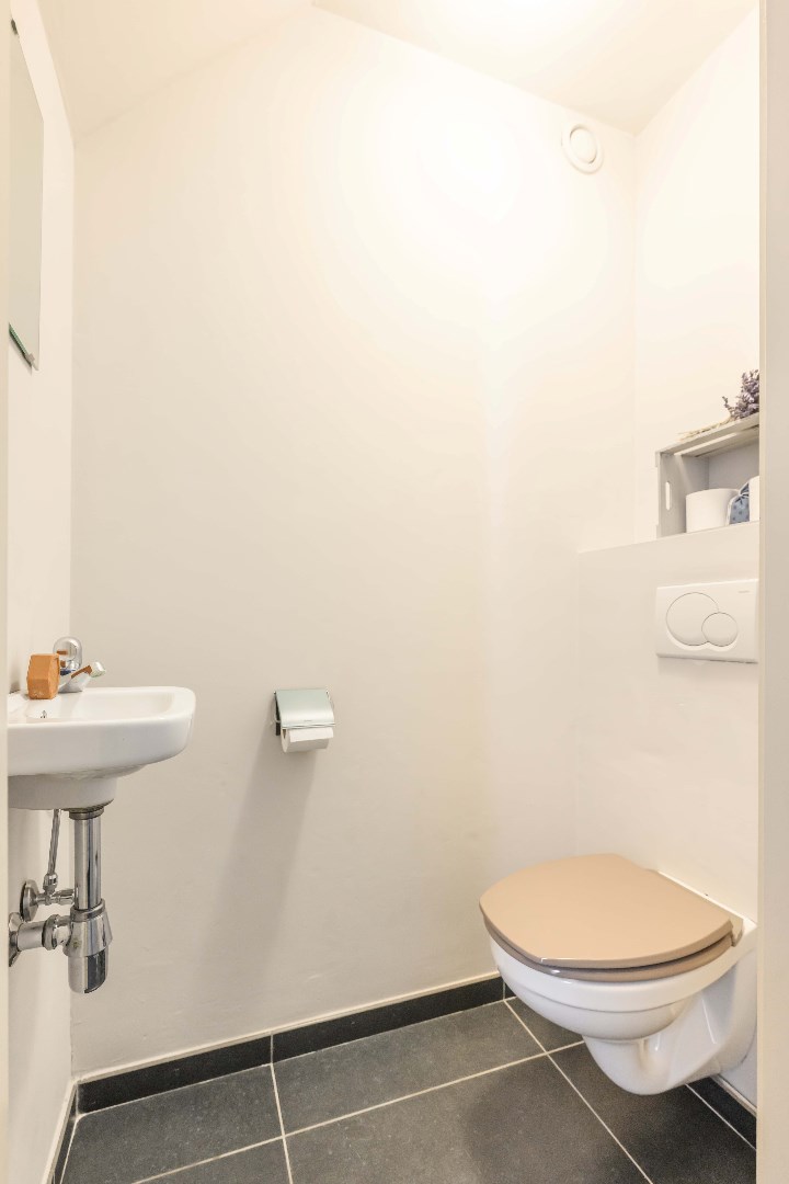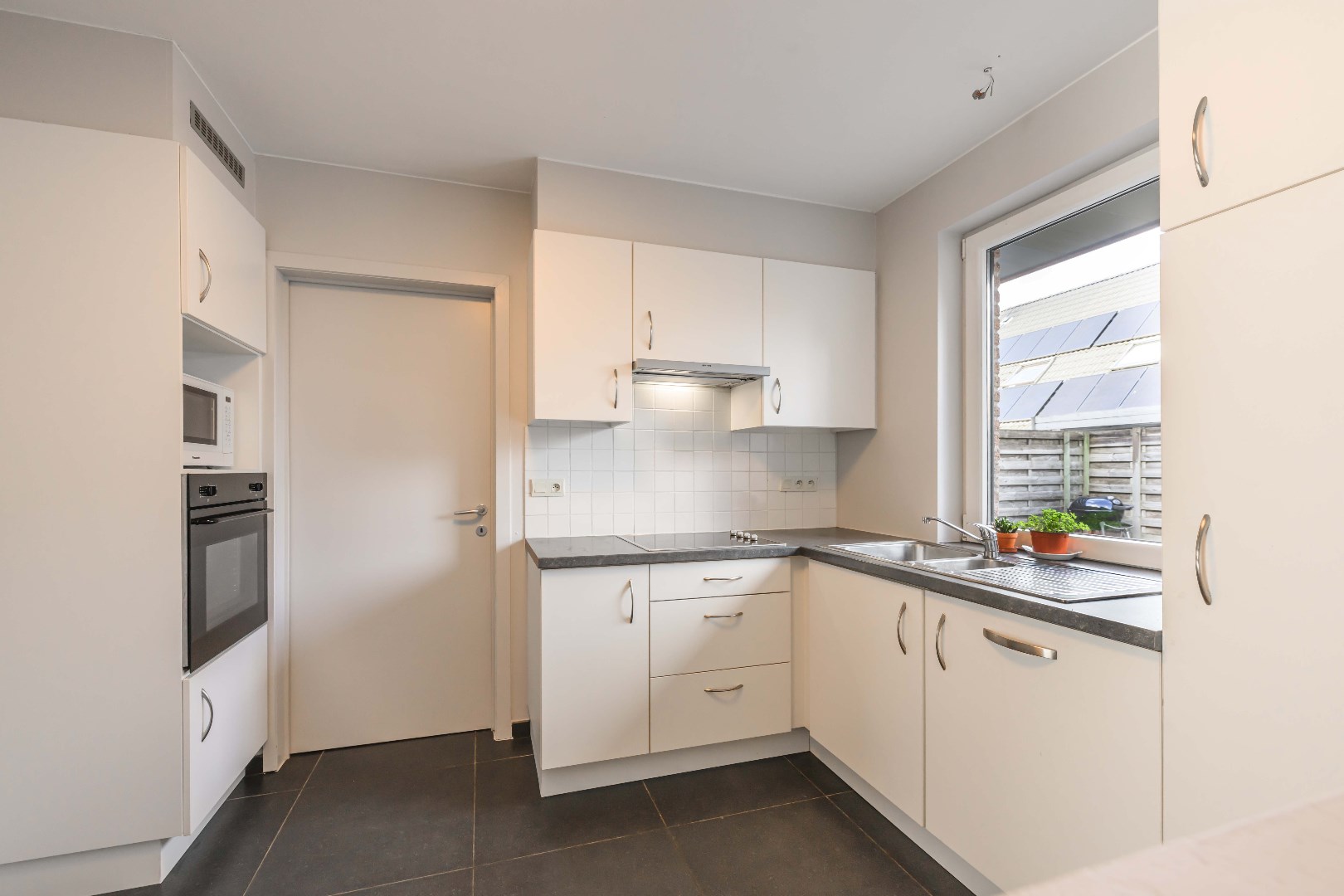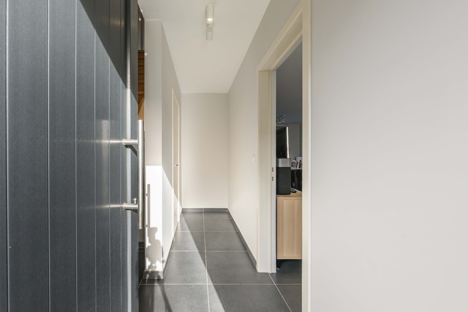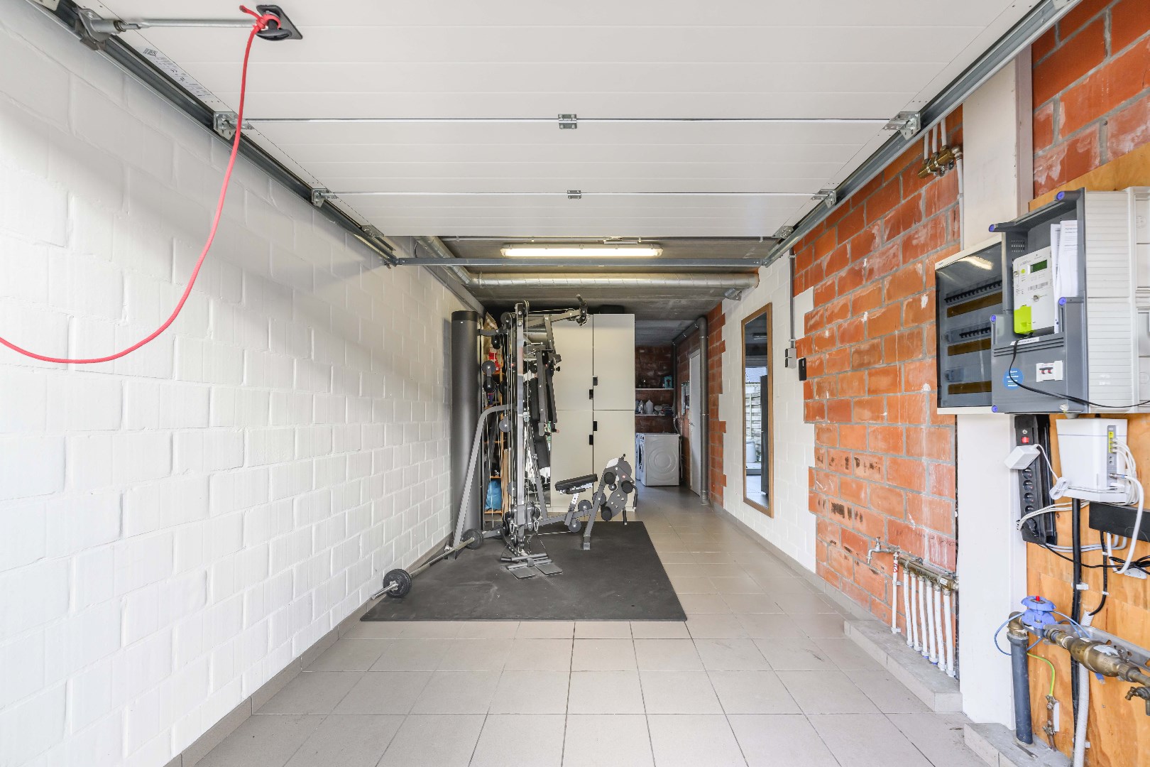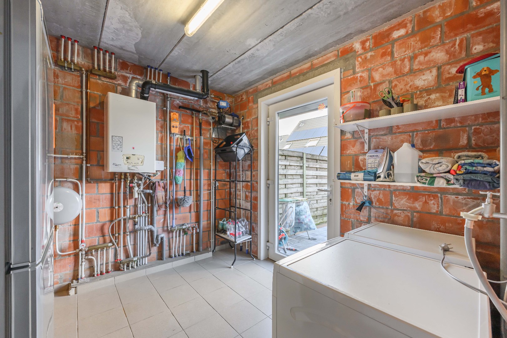 U komt binnen via de inkomhal met vestiaire ruimte en apart gastentoilet. Verder komt U terecht in de ruime en lichtrijke leefruimte (30 m²) met zit- en eethoek en aansluitend de open ingerichte keuken (kookplaat | dampkap | spoelbak | frigo | vaatwasser) met praktische koele berging. Vanuit de keuken is er toegang tot de wasplaats (7,50 m²) en de inpandige garage (16 m²) ook van hieruit is er directe toegang tot de tuin.