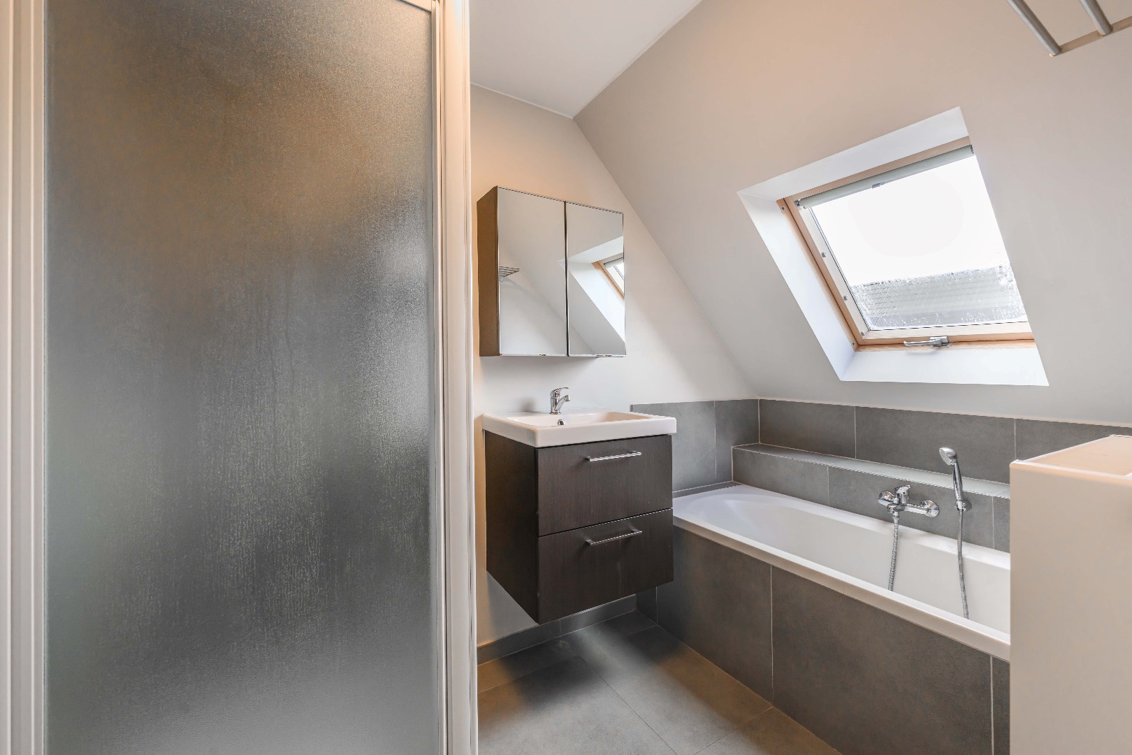 Het verdiep omvat 3 slaapkamers (16 m² | 13,50 m² | 12 m²) en een ingerichte badkamer (ligbad | douche | lavabo met meubel) alsook een apart toilet.