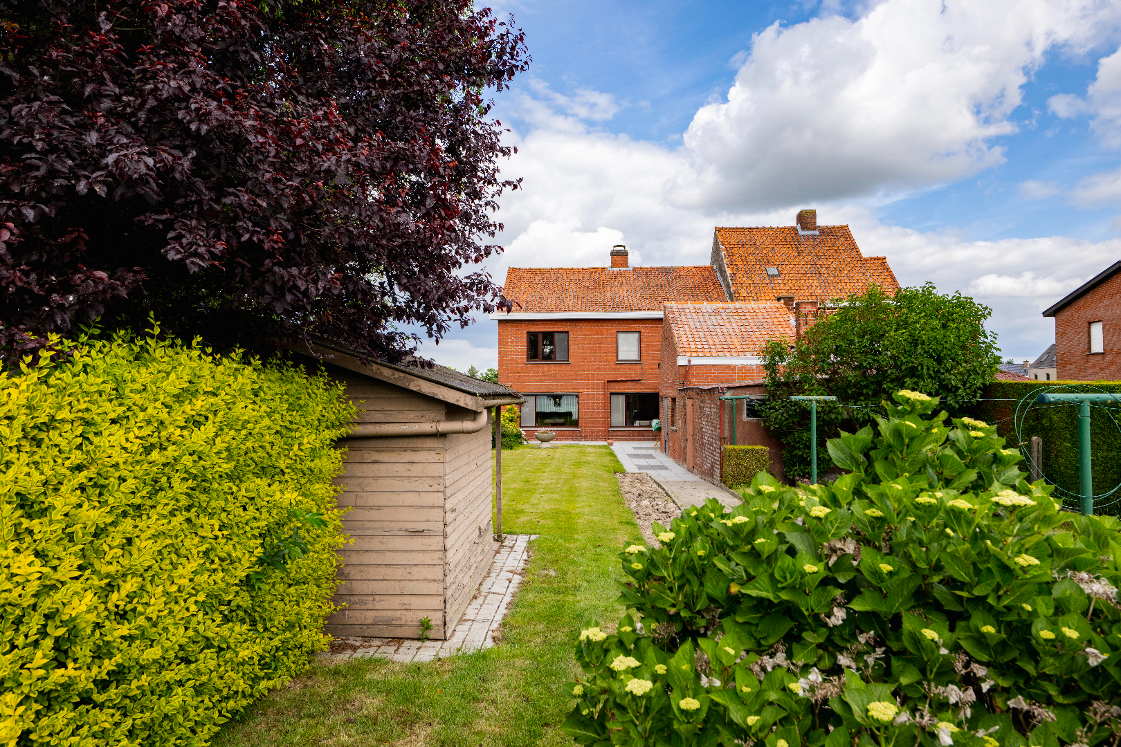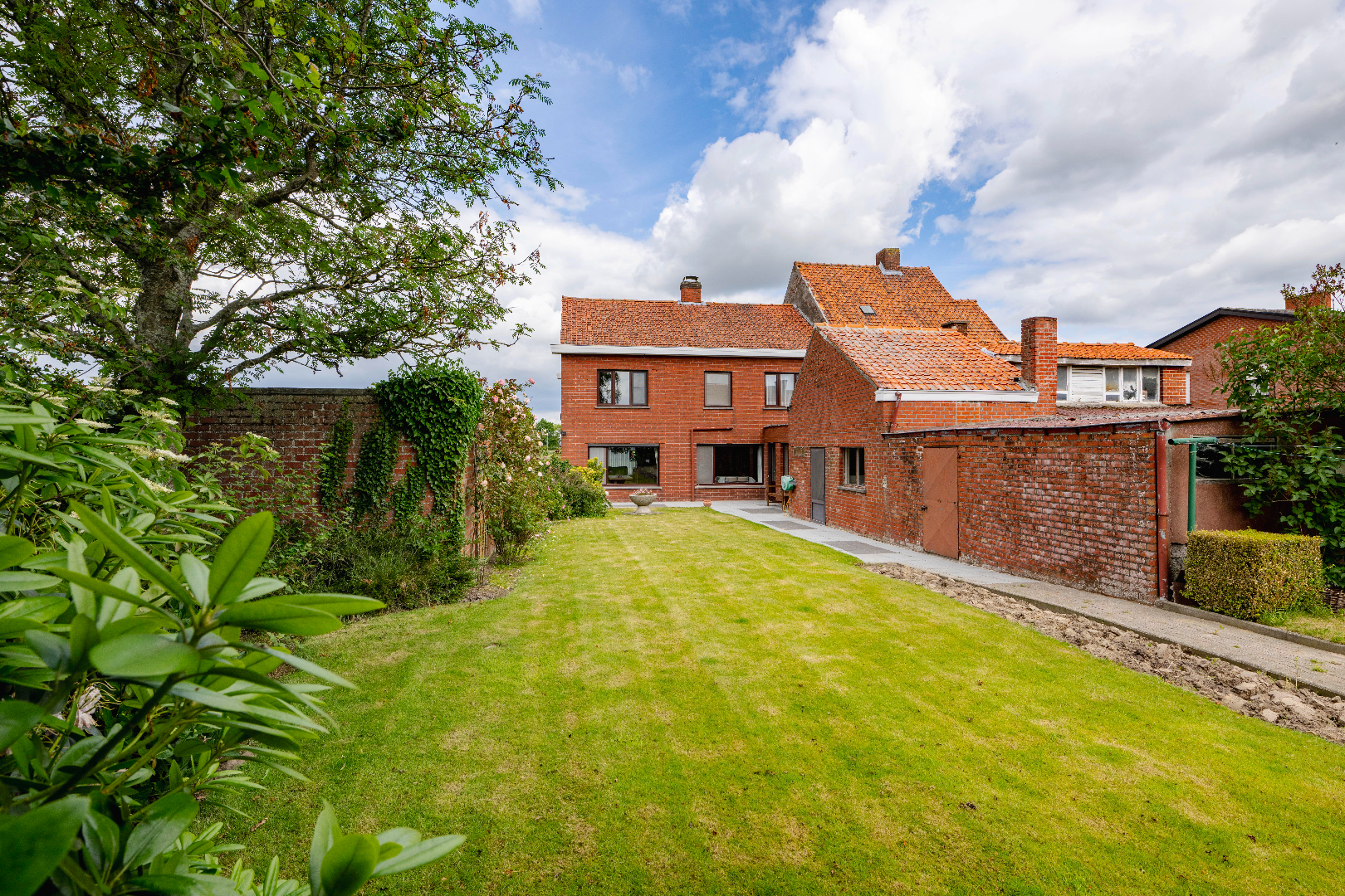 De eigendom is voorzien van een zongerichte achtertuin van maar liefst 450 m² met voldoende bergruimtes (3 bergingen in totaal 20 m² | 13 m² en 12 m²) alsook een ruime garage van maar liefst 40 m² met vernieuwd plat dak.