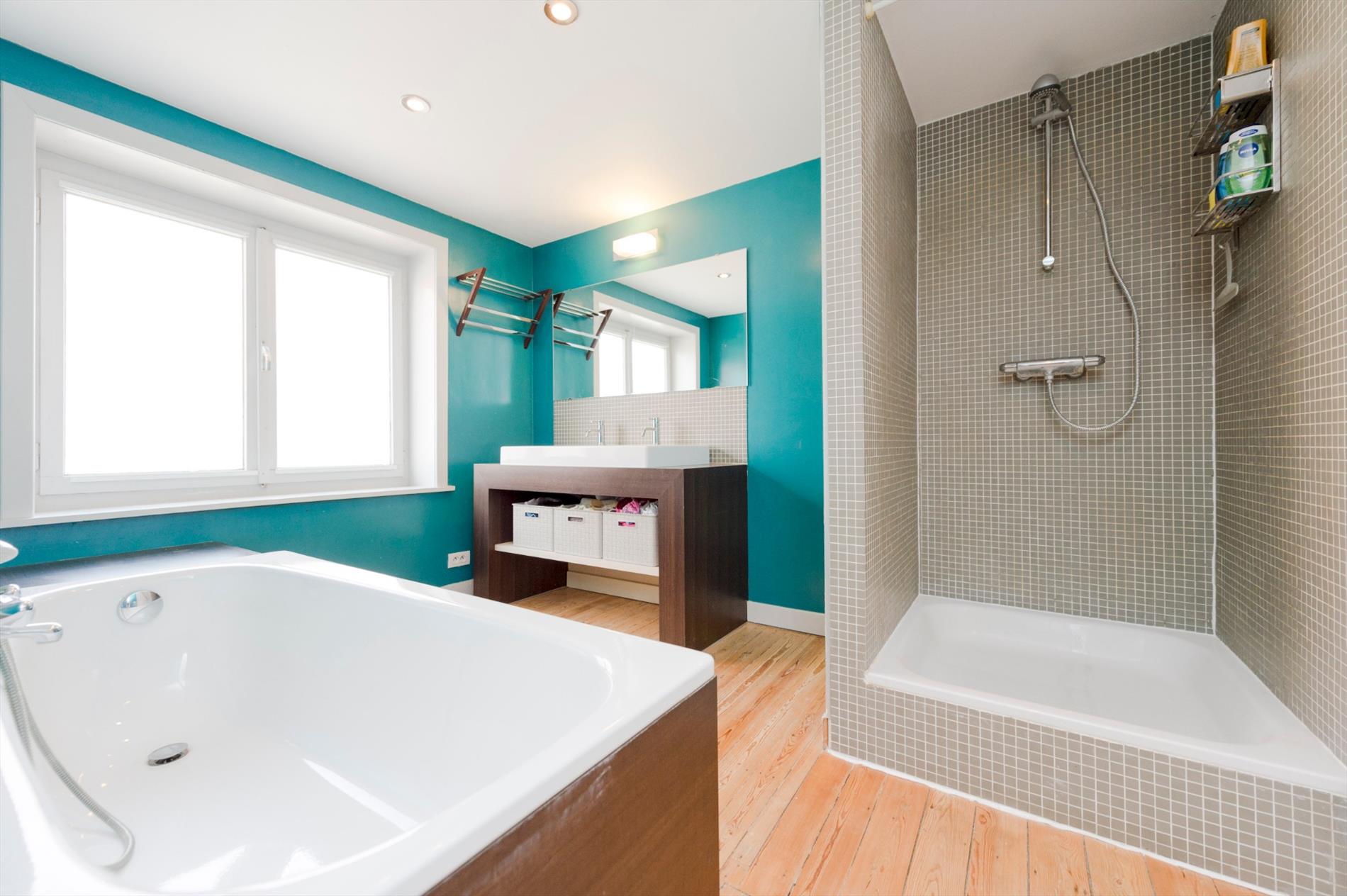 1ste verdieping: Opgefriste de nachthal, ruime hoofdslaapkamer met eigen sanitaire ruimte (toilet, lavabo), tevens een ruime kinderkamer, volledig vernieuwde badkamer (ligbad/dubbele lavabo/douche) en een kleinere kinderkamer/dressing.