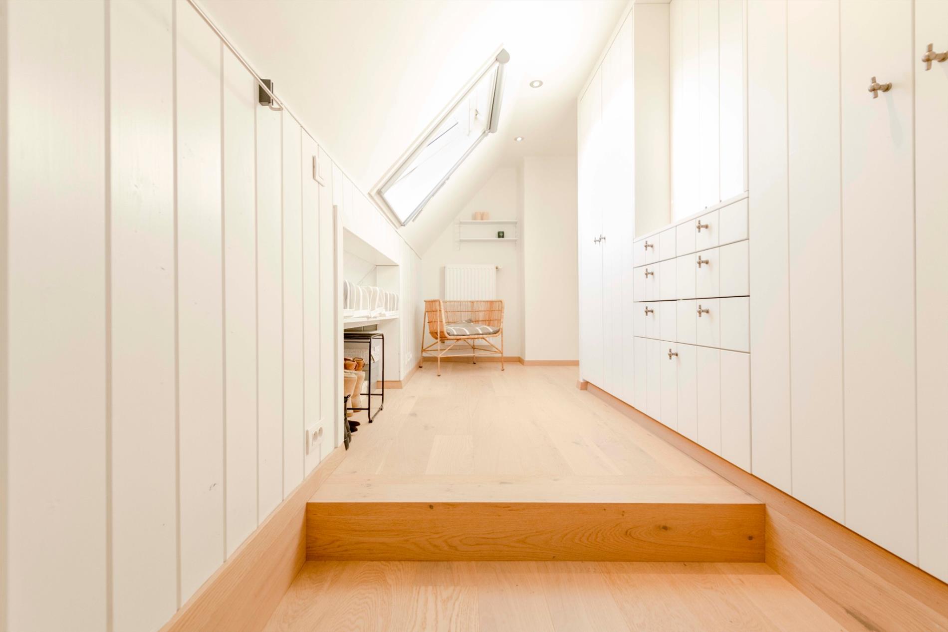 VERDIEPING: Ruime nachthall met ingemaakte kasten. Er zijn 3 zeer ruime slaapkamers met een oppervlakte van 14 m², 16,50 m² en 16,50 m². Verder is er nog de ingerichte badkamer, voorzien van een ligbad, inloopdouche, badkamermeubel met dubbele wastafel en een toilet. De master bedroom beschikt over een eigen perfect afgewerkte dressingruimte alsook toegang tot de polyvalente ruimte op het gelijkvloers.