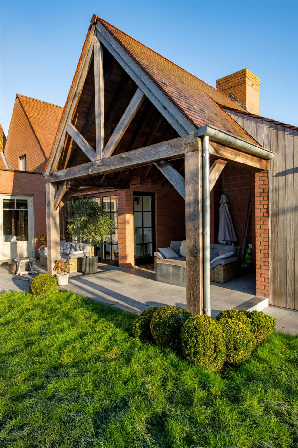 TUIN: De tuin biedt U een gezellige zongerichte zitruimte met eiken overkapping. Tevens is een tuinberging aanwezig met reeds alle voorzieningen mocht U later een zwembad willen aanleggen. De tuin is volledig afgesloten en ingevolge zeer kindvriendelijk. De voortuin beschikt over 2 aangelegde staanplaatsen met extra ruimte tot parkeren. Aparte toegang tot praktijkruimte!