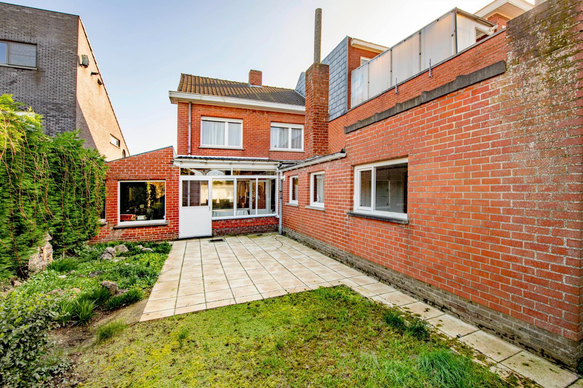 De woning beschikt over een ruime tuin met terras en bergingen. Deze is zuidwest gericht zodoende U optimaal kan genieten van de zon. De eigendom is volledig afgesloten en ingevolge kindvriendelijk.