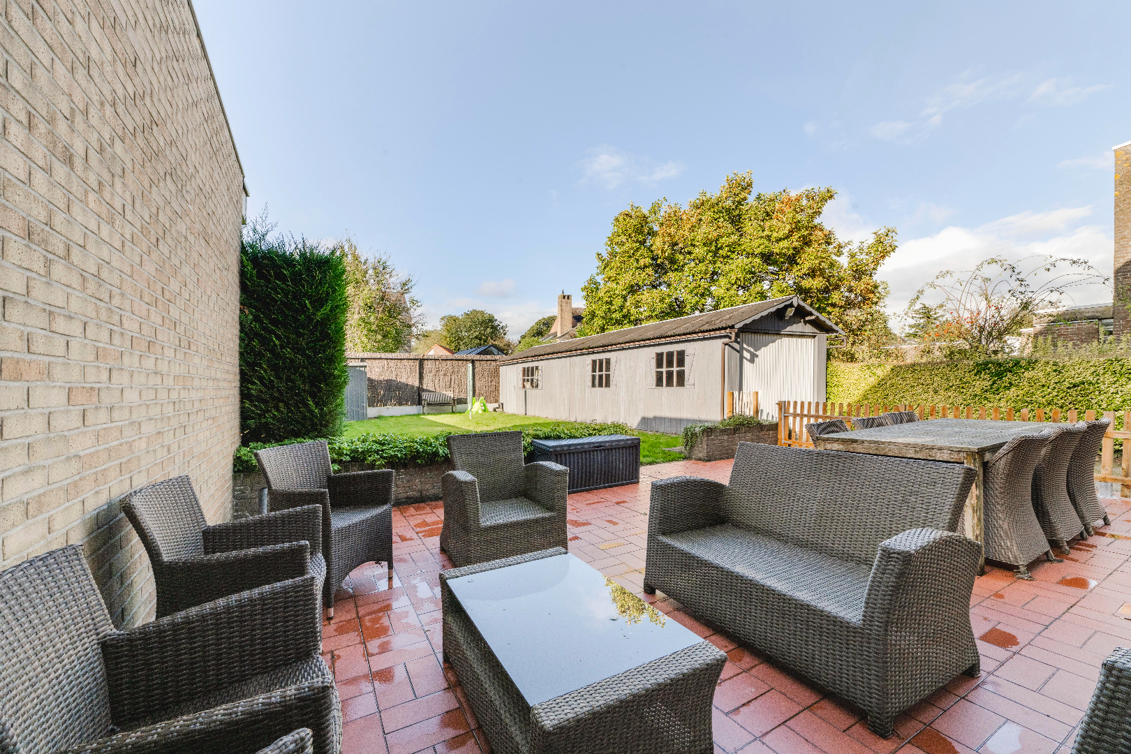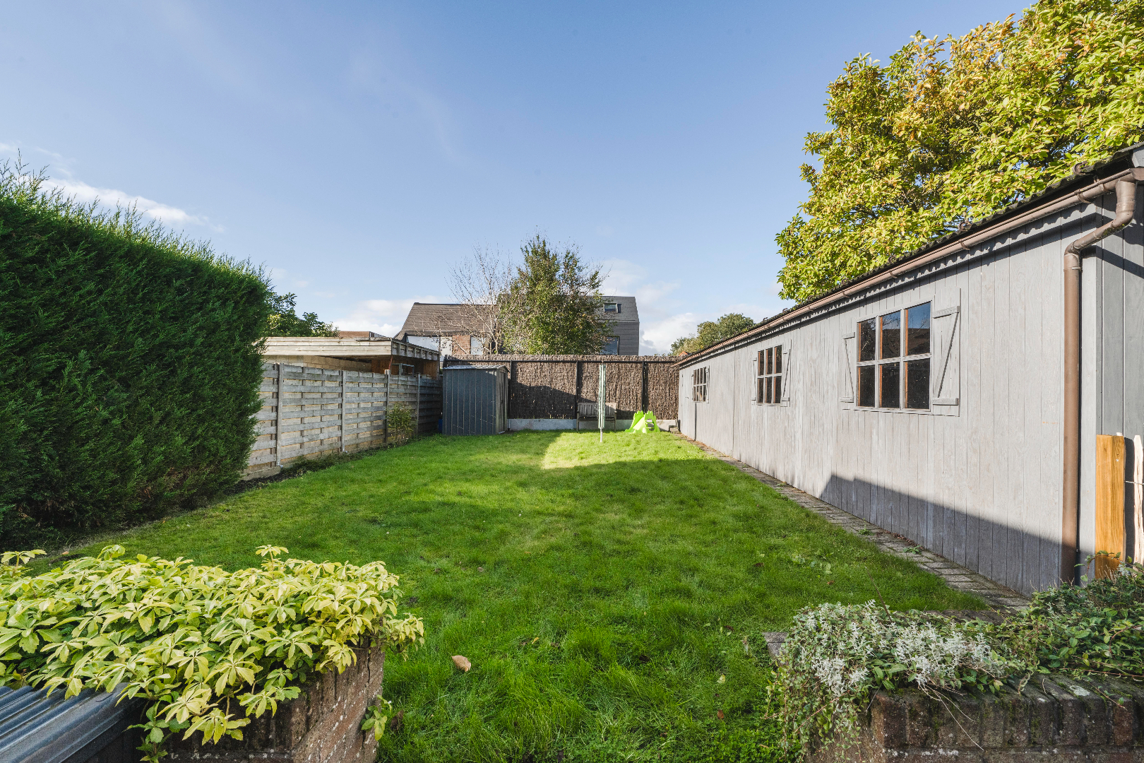De woning biedt een ruime achtertuin 112 m² met vrijstaande garage (40m²) en private parkeergelegenheid voor 3 wagens.
