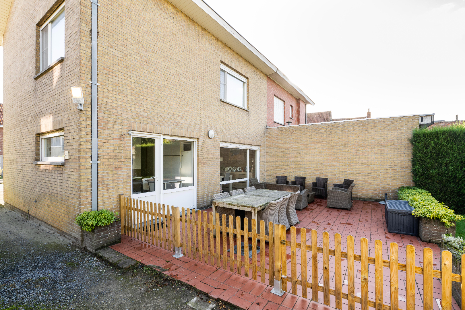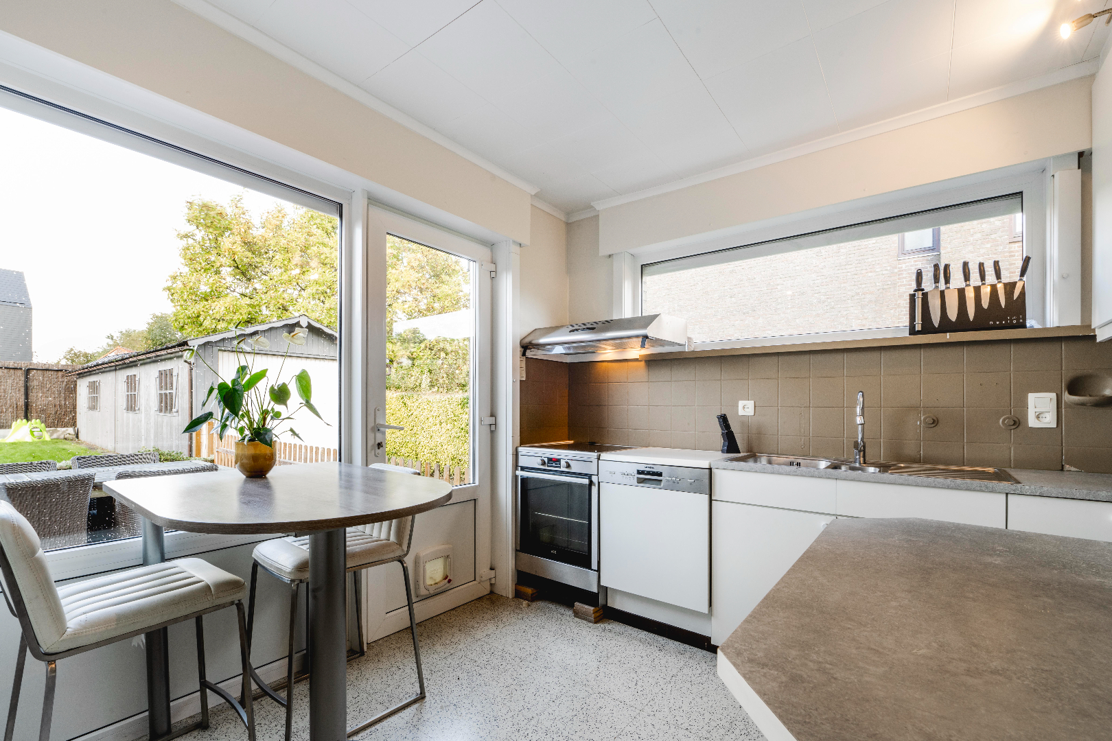 U komt de woning binnen via de inkomhal met apart gastentoilet. Aansluitend is er de ruime leefruimte (28 m²) met gezellige gaskachel. Verder is er de gesloten keuken volledig ingericht (gasfornuis | dampkap | spoelbak | oven) met toegang tot de praktische droge kelder (13 m²). Zowel via de keuken als de leefruimte is er directe toegang tot het terras en tuin.