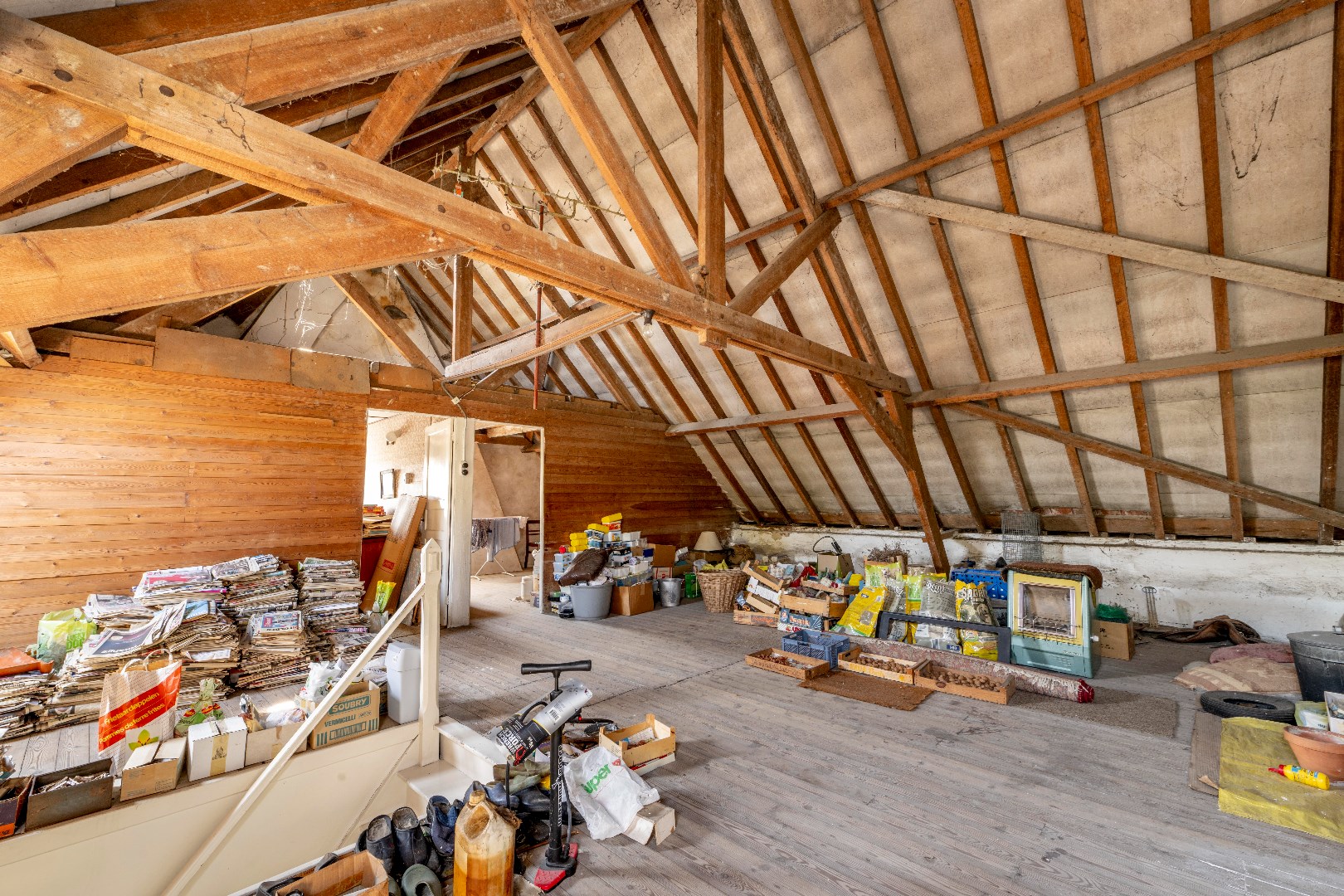 U komt binnen via de inkomhal met directe toegang tot de leefruimte met zithoek en gaskachel. Verder is er de gesloten ingerichte leefkeuken (kookplaat | dampkap | oven | spoelbak). Aansluitend is er de praktische droge kelder. Als laatste is er nog een gelijkvloerse twee persoons slaapkamer, een voute slaapkamer en een vaste trap naar de ruime zolderruimte met nog 2 aparte ruimtes.