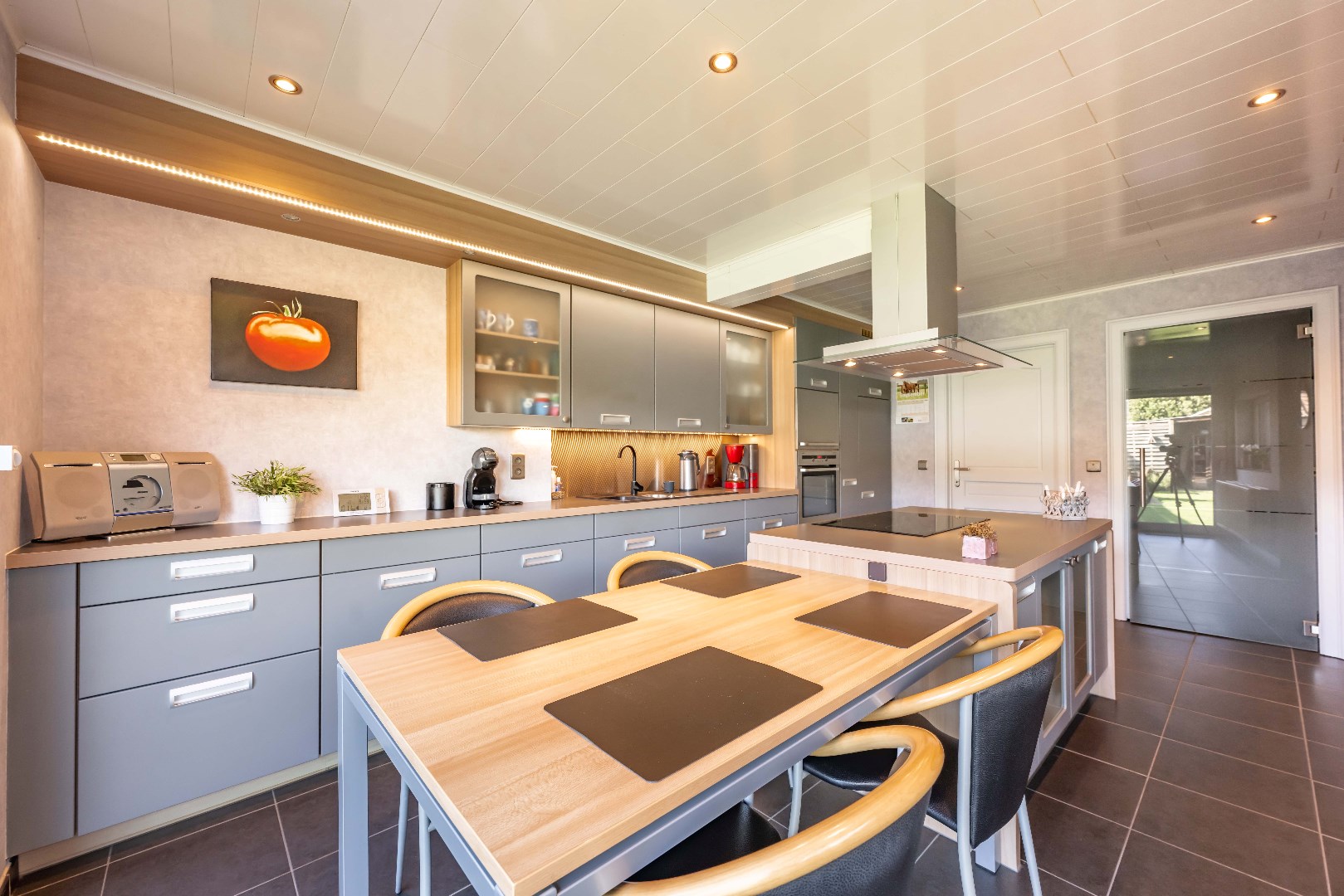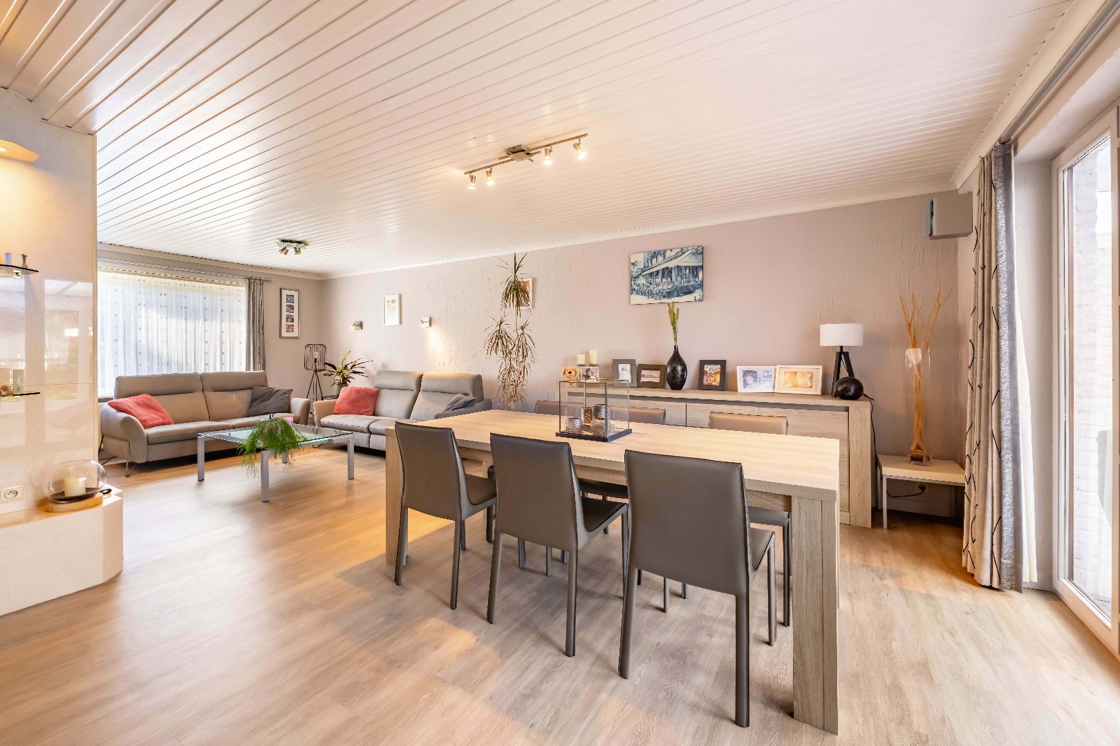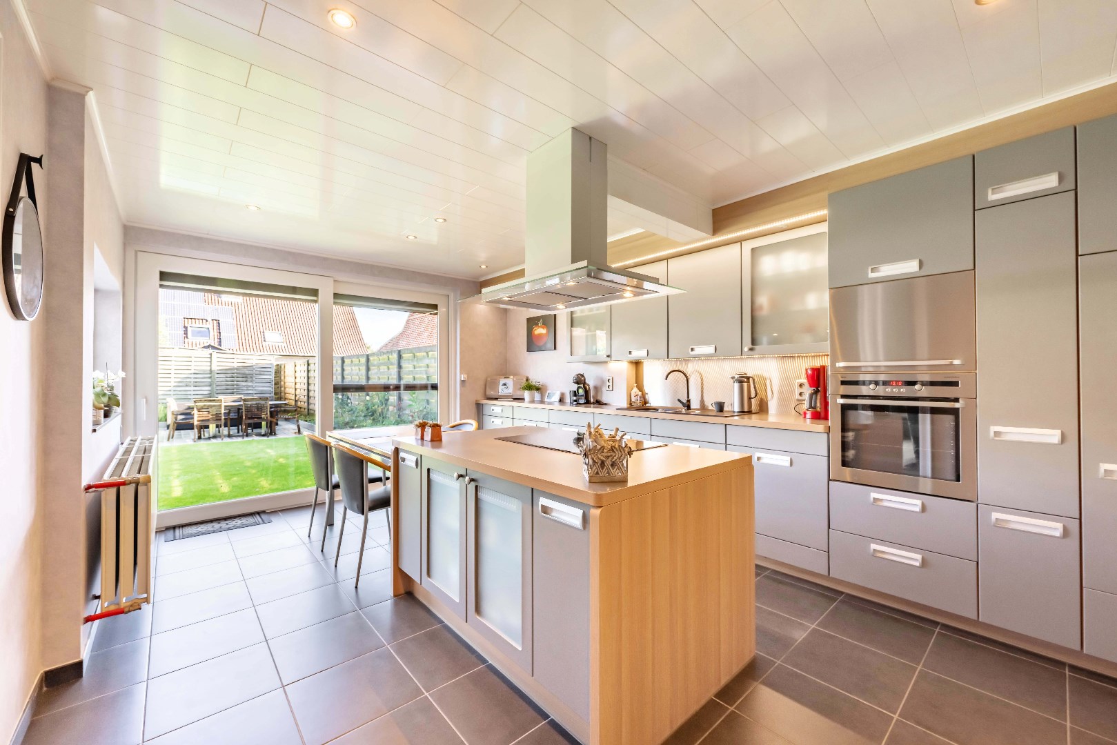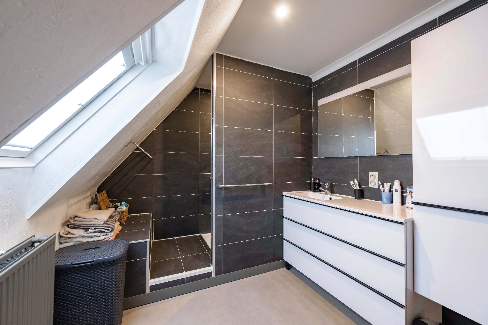 Bij binnenkomst via de inkomhal, vindt u een apart gastentoilet. De lichte en ruime leefruimte is voorzien van een gezellige houtcassette ingewerkt in een natuursteen wandmeubel. Aansluitend is er een ruime veranda waar u kunt genieten van een prachtig uitzicht en directe toegang heeft tot de tuin. De recente ruime ingerichte keuken is voorzien van een kookplaat, dampkap, spoelbak, vaatwasser, koelkast en oven, en heeft een eetplaats en praktische berging. Vanuit de keuken bereikt u de inpandige garage met een geautomatiseerde poort. Op de verdiep bevinden zich 3 ruime slaapkamers (16 m² | 15 m² | 12 m²) en een vernieuwde moderne badkamer met lavabo met meubel, inloopdouche en toilet. Extra opslagruimte is beschikbaar op de geïsoleerde zolder, toegankelijk via een vouwtrap.