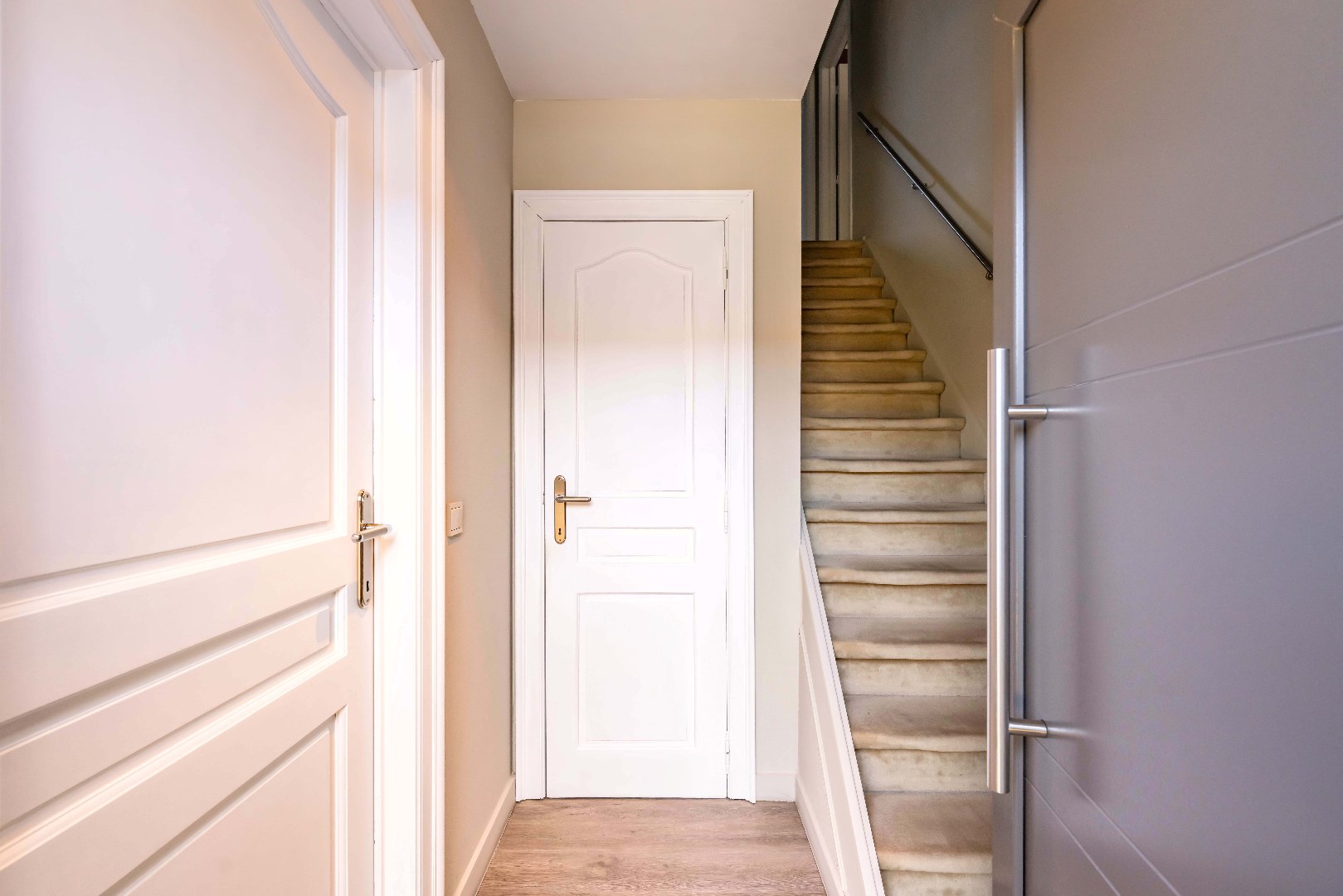 EXTERIEUR: De woning beschikt over een gezellige achtertuin met terras, volledig afgesloten en kindvriendelijk. De tuin is voorzien van een praktische tuinberging (25 m²). Op eigen terrein is er private parkeergelegenheid voor 2 wagens.