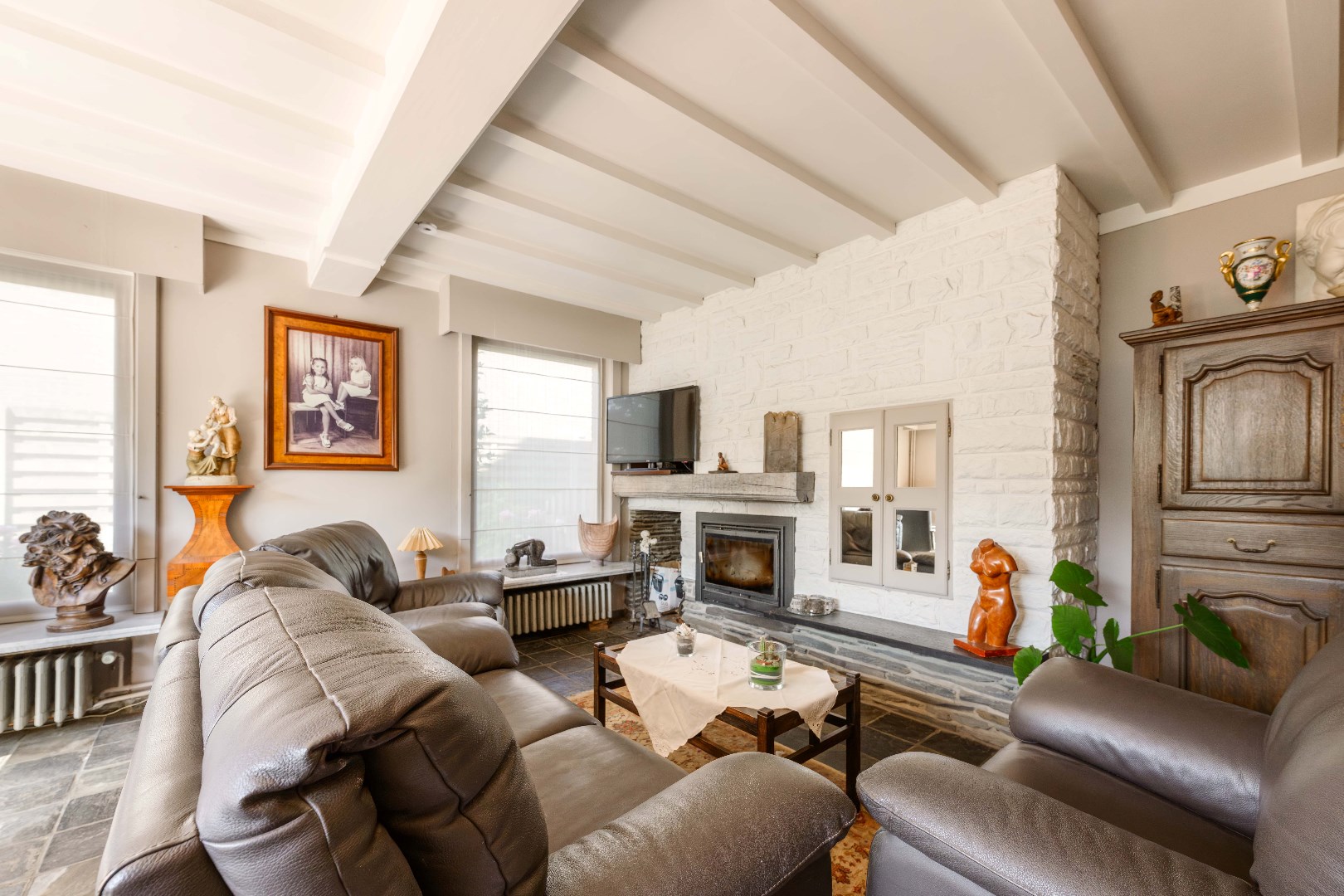 De inpandige garage (16 m²) beschikt over een vernieuwde geïsoleerde en geautomatiseerde poort.