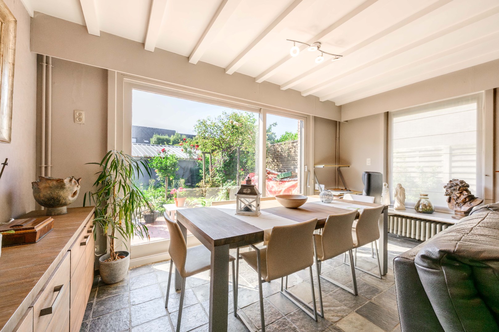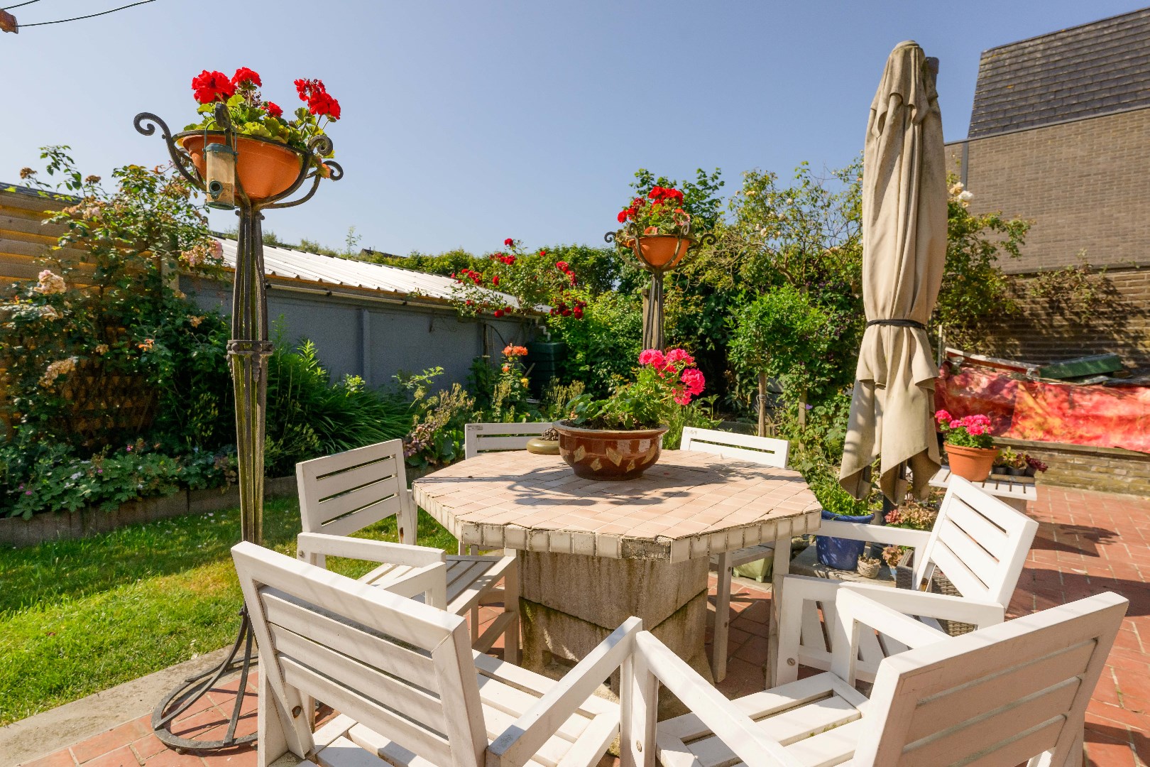 De woning is voorzien van een zongerichte tuin met gezellig terras, volledig afgesloten en ingevolge kindvriendelijk. Tevens beschikt U over een vernieuwde tuinberging.