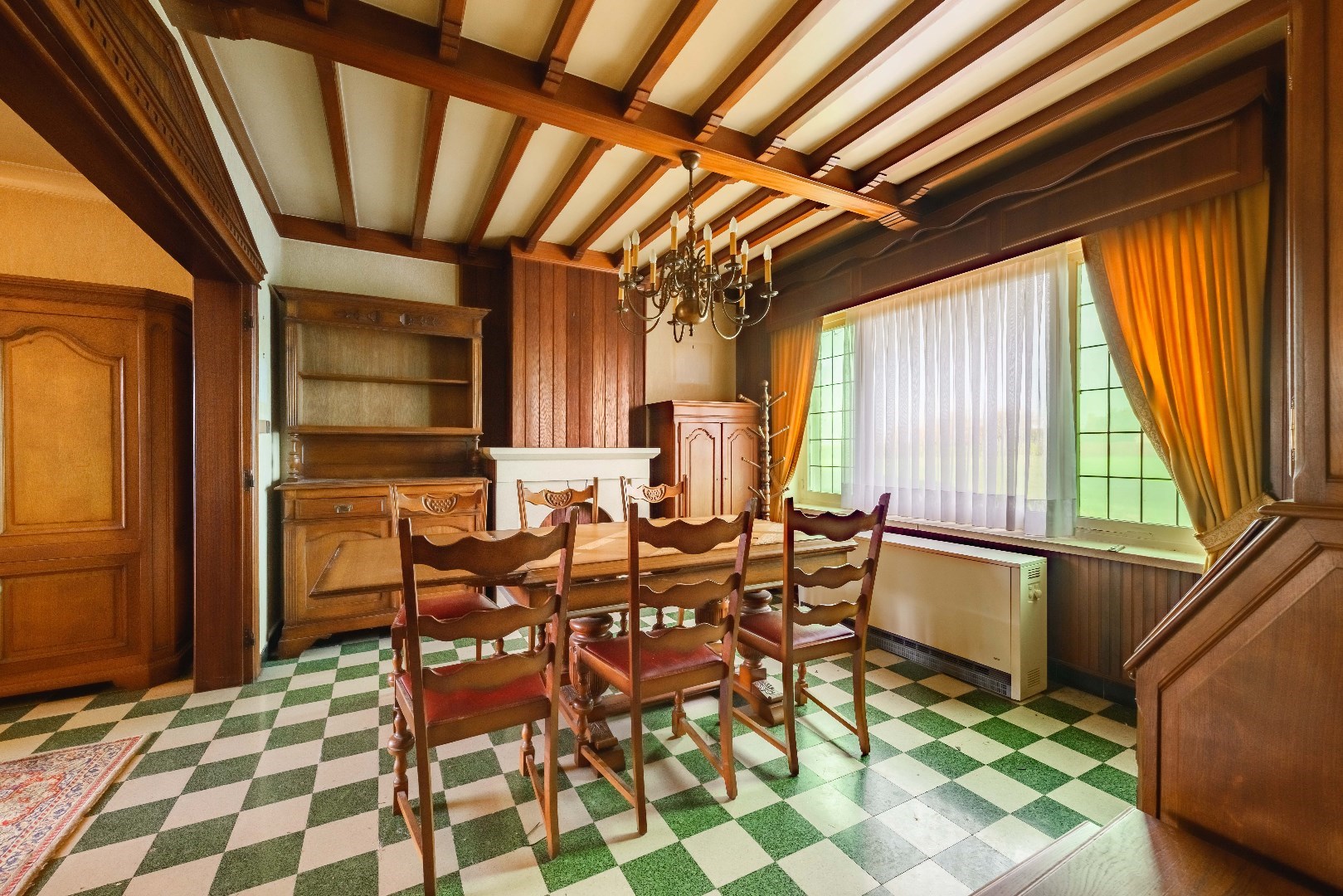 Bij binnenkomst komt u in een ruime karaktervolle inkomhal met toegang tot de lichtrijke ruime woon- en eetkamer, die u verder leidt naar de keuken met handige kelder ter stockage.