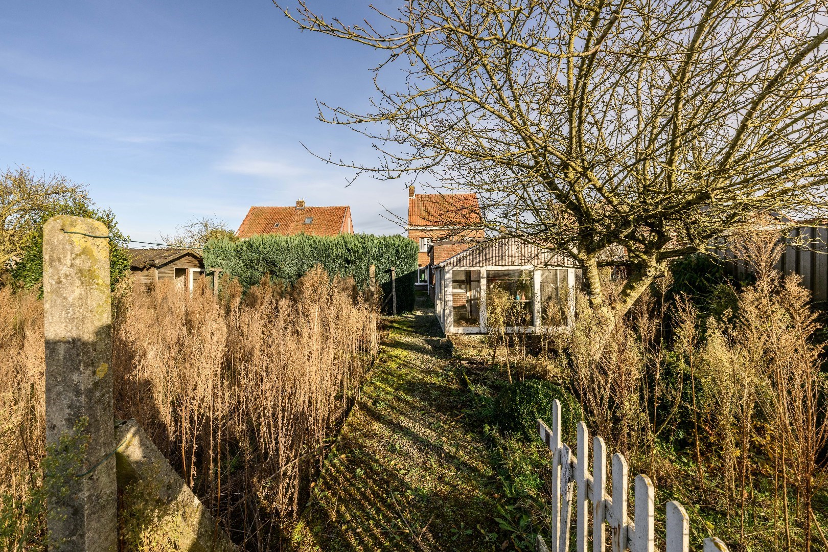 De woning beschikt over een ruime, zuidgerichte tuin, perfect voor zonliefhebbers. In deze tuin is er praktisch bijgebouw (40 m²) die U naar believen kan inrichten.