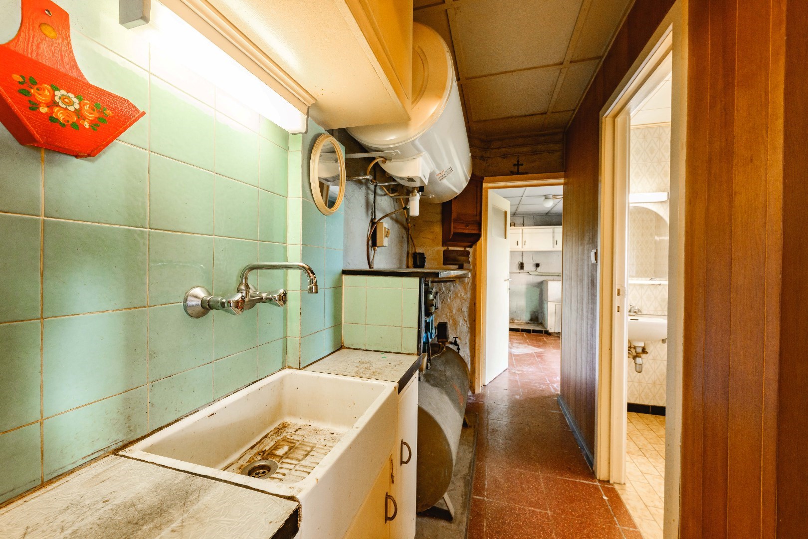 , de praktische wasplaats en de bijkeuken.