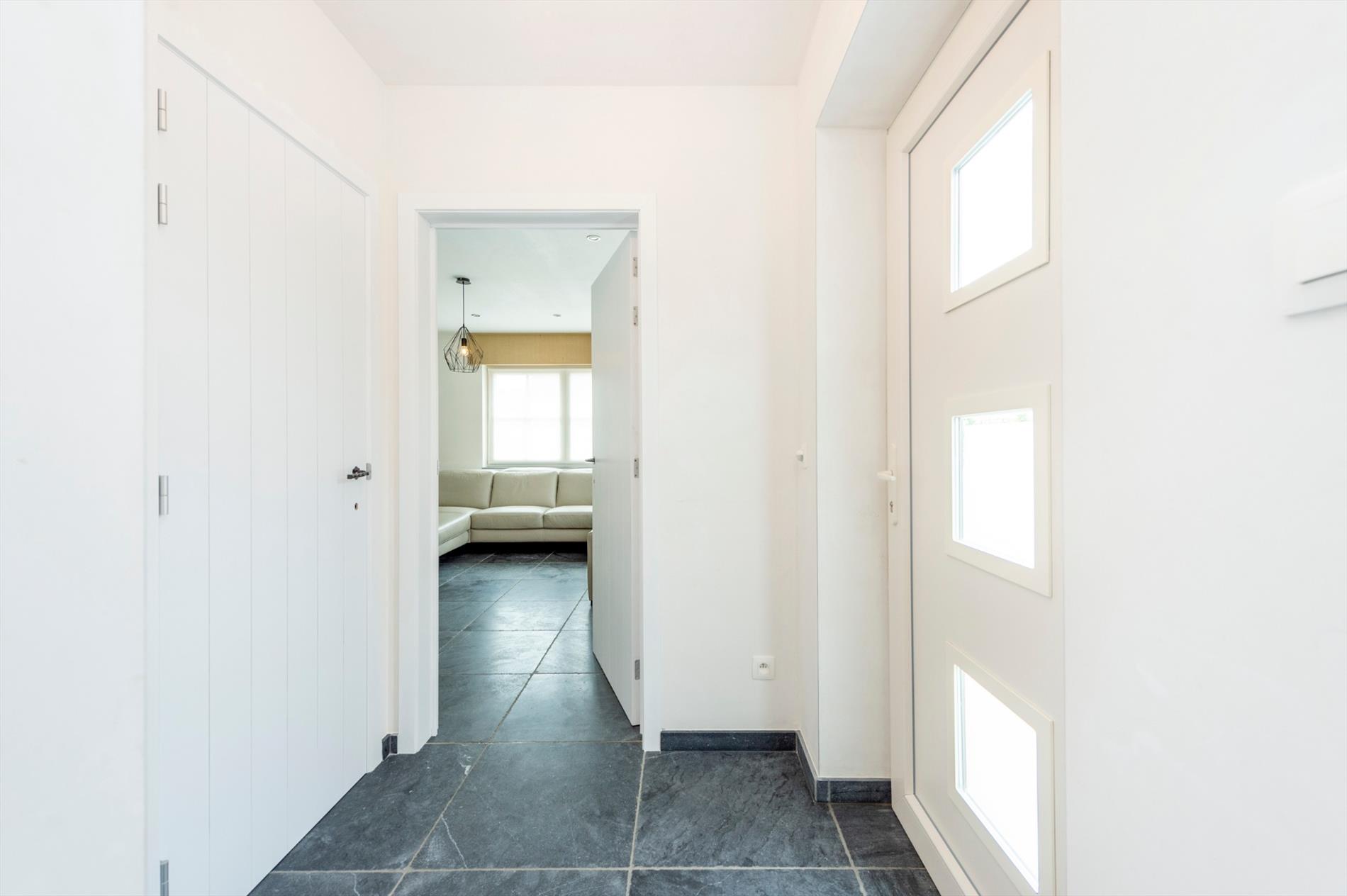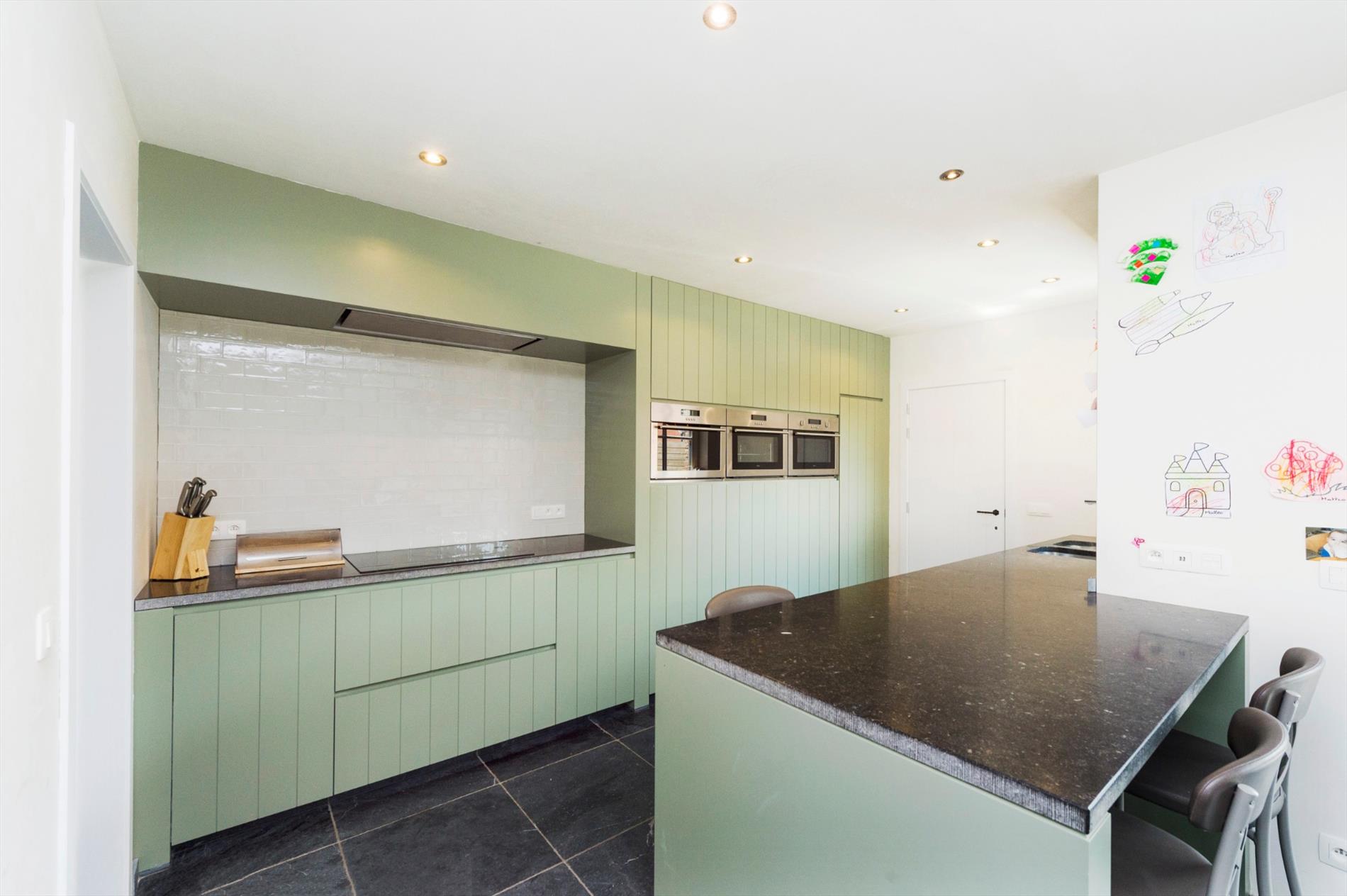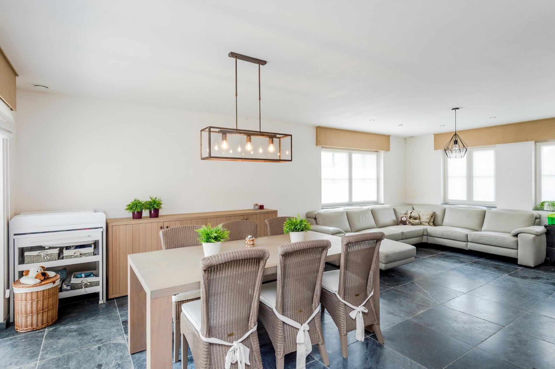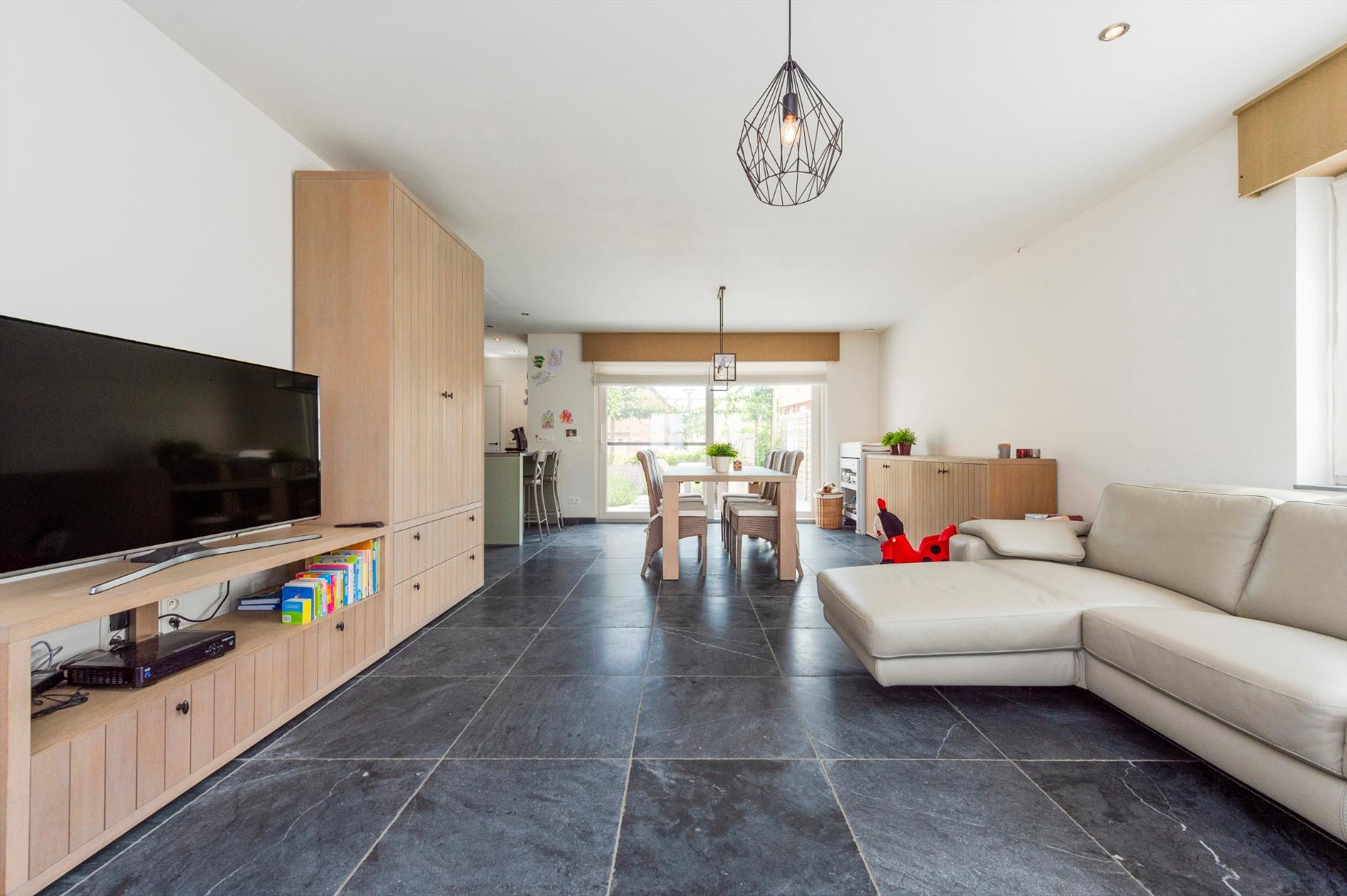 Afgewerkt met prachtige natuurstenen bevloering alsook vloerverwarming. Deze omvat de inkom met gastentoilet (hangtoilet) met natuursteen/eiken handwasser. Aansluitend komt U in de lichtrijke leefruimte (34 m²) met directe toegang tot de aangelegde tuin. De open ingerichte keuken is voorzien van een natuursteen werkblad en heeft tevens toegang tot de koele berging (5,60 m²) alsook tot de achterinkom met ingemaakte kast (3,20m²).