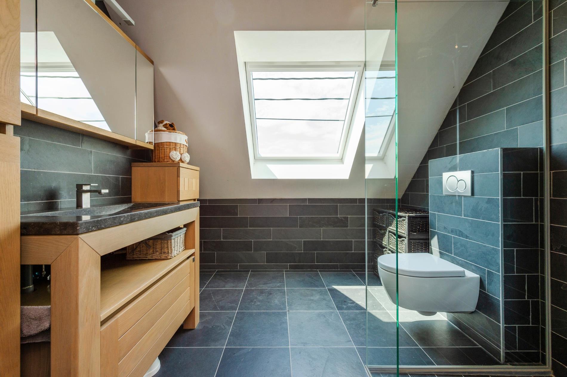 Het verdiep omvat 3 slaapkamers, waarvan 2 kamers voorzien van ingemaakte kasten. Het bureel is tevens ingebouwd. De prachtige badkamer met natuursteen en volle eik afgewerkt maakt het verdiep compleet!