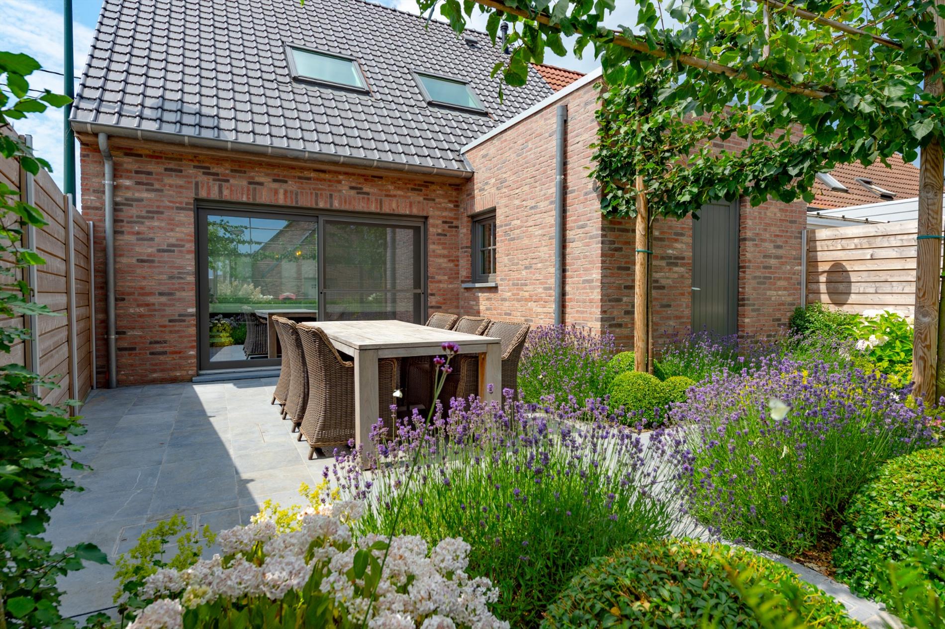 Het betreft een volledig aangelegde tuin met 2 terrassen, zodoende kan U op elk moment van de dag genieten!!!