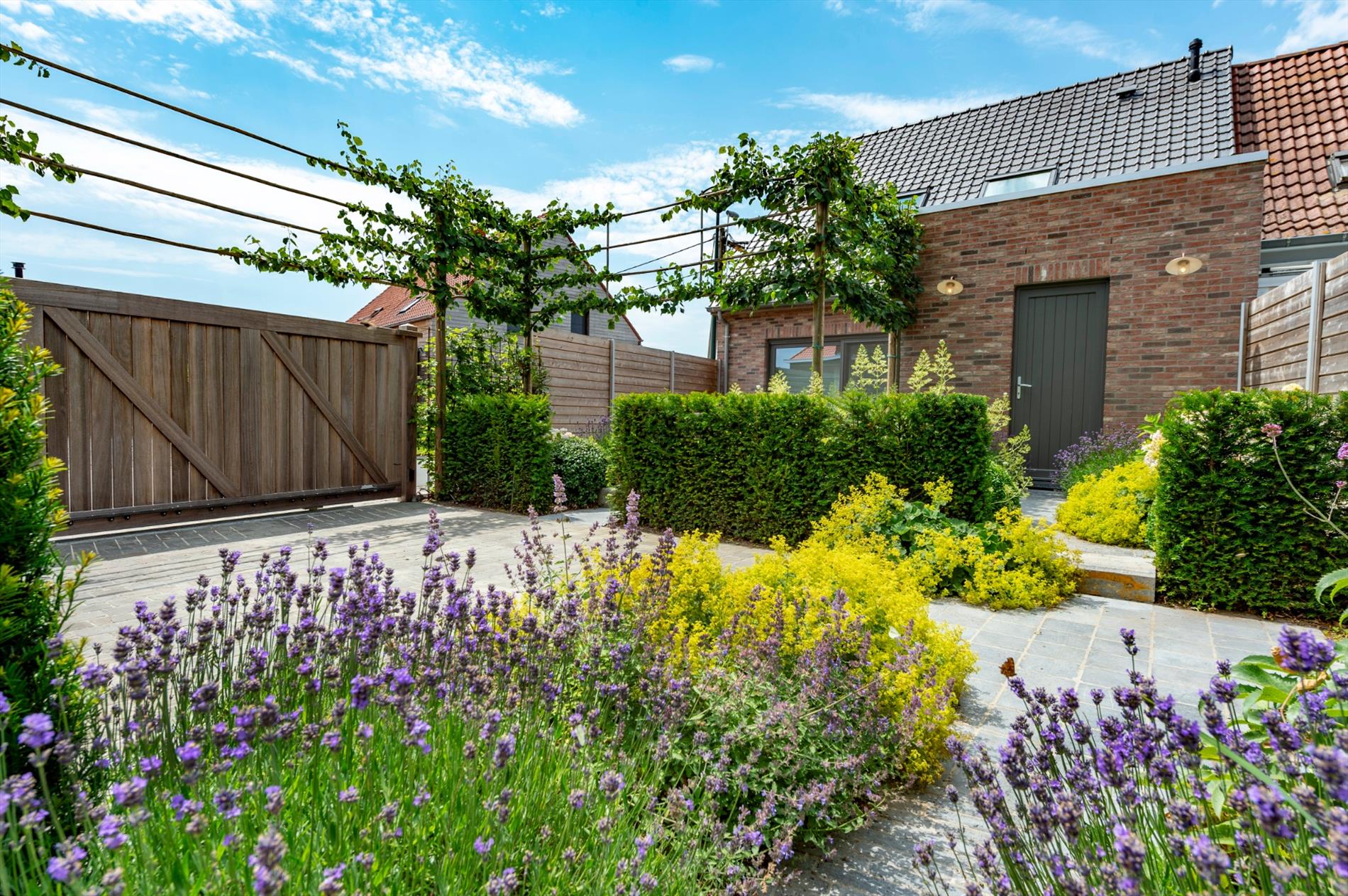 De tuin is volledig afgesloten en biedt U volledige privacy en geeft U tegelijk een gezellig sfeer. Het bijgebouw omvat maar liefst 54 m² met zolder 28 m² dit met automatische poort (6 m op 2,90 m).