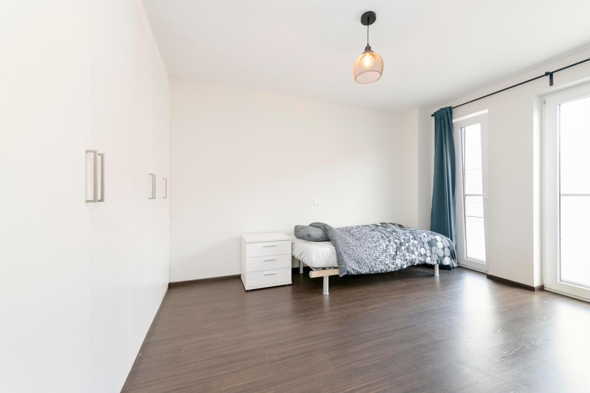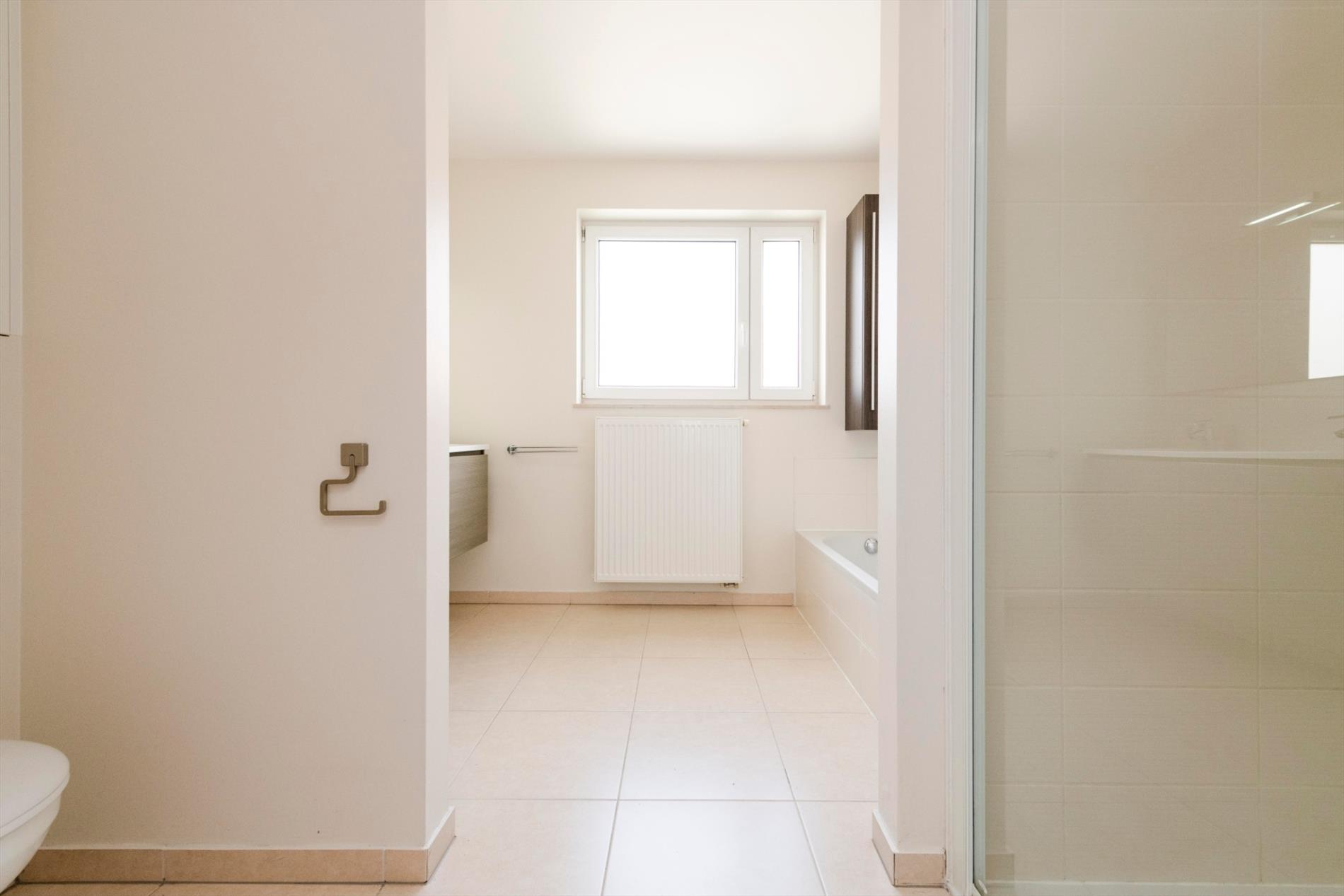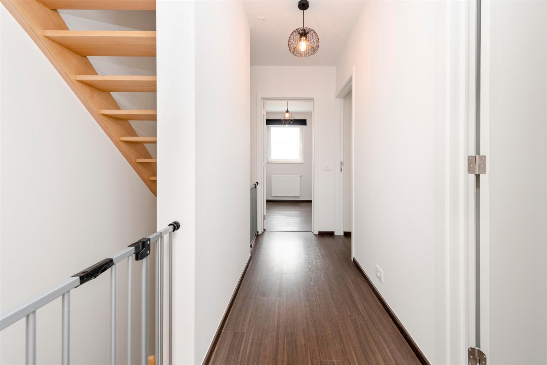 Het eerste verdiep omvat een nachthal met toegang tot de badkamer (dubbele lavabo met meubel - douche - toilet en ligbad. Verder zijn er 2 ruime 2 persoons slaapkamers (15,50 m² - 15,00 m²) met ingemaakte kasten alsook een kinderkamer (8 m²).