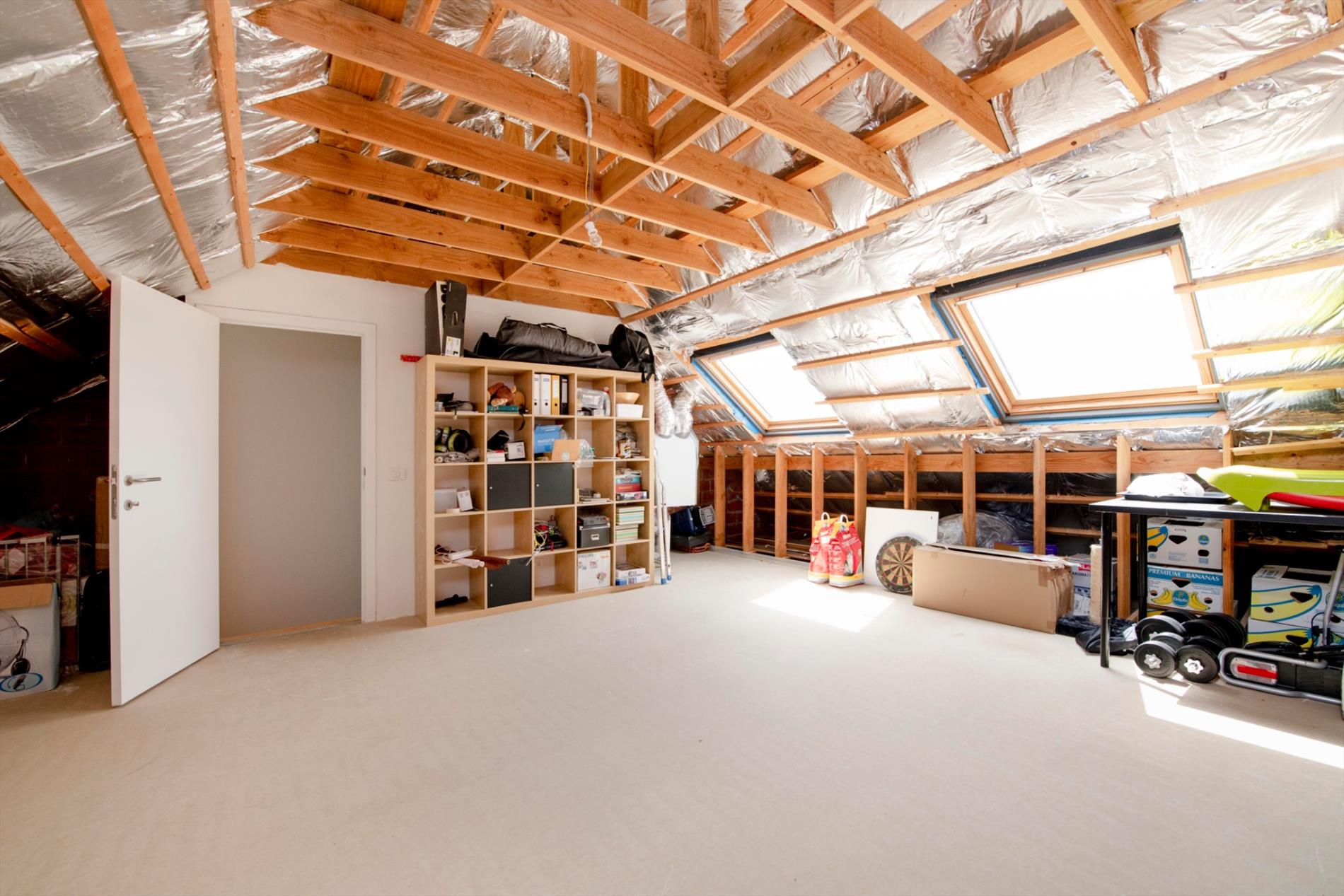 Via een vaste houten trap komt U terecht op de tweede verdieping. Hier bevindt zich de zolder/nog in te richten polyvalente ruimte. Deze is volledig geïsoleerd en bevat twee veluxen met dubbele beglazing. Twee slaapkamers zijn tevens voorzien van automatische zonnewering.