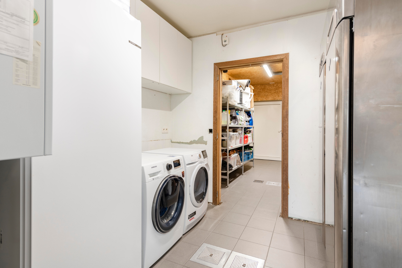 Via de dubbele stalen deur is er toegang tot het gastentoilet alsook het prachtige bureel van maar liefst 13 m²!