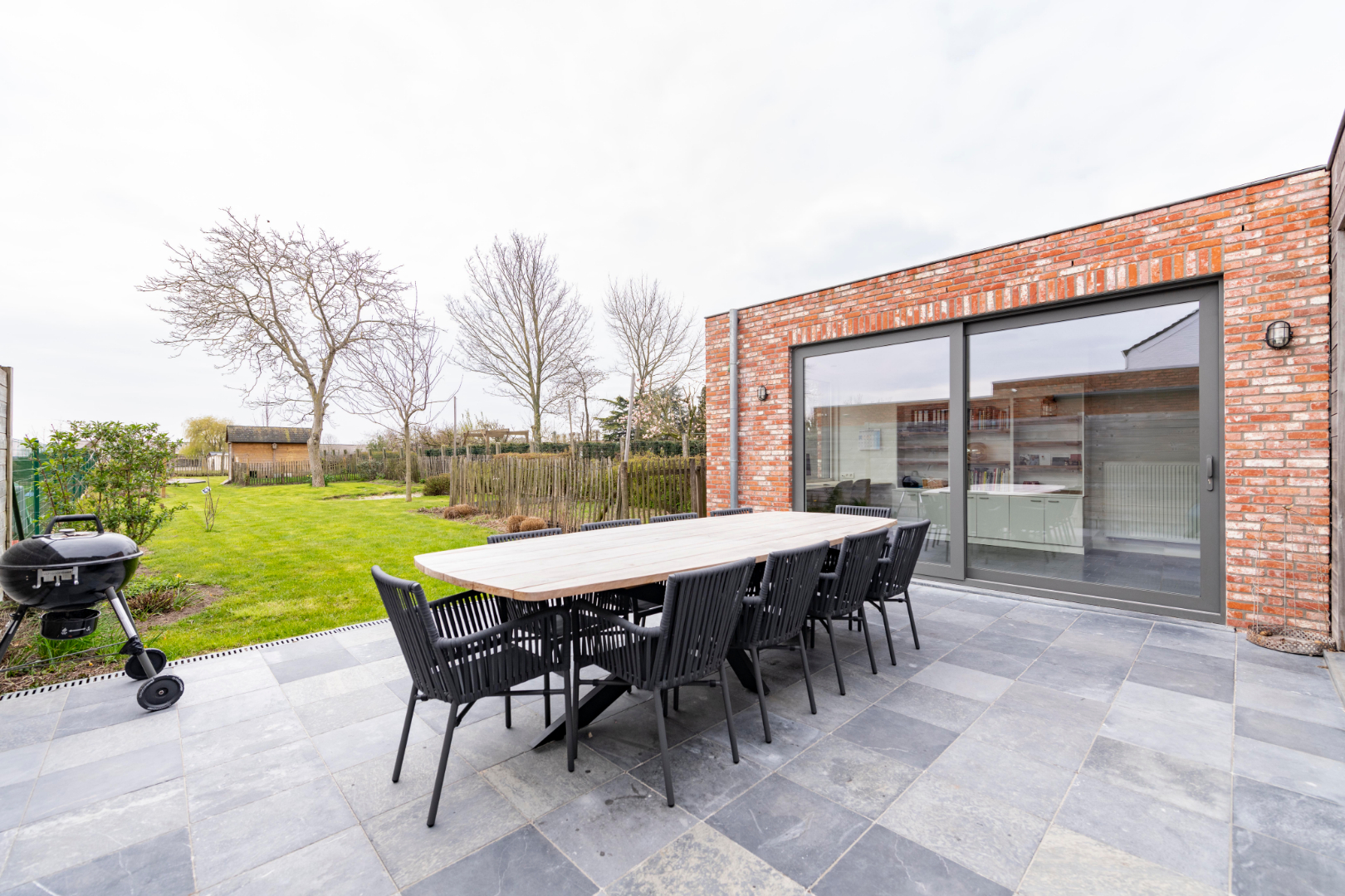 Verder biedt de tuin een mooi zonneterras van maar liefst 30 m² in blauwsteen, alsook een tuinhuis.