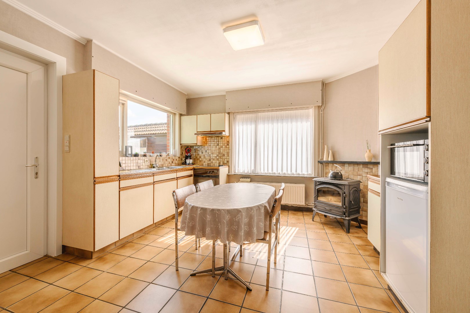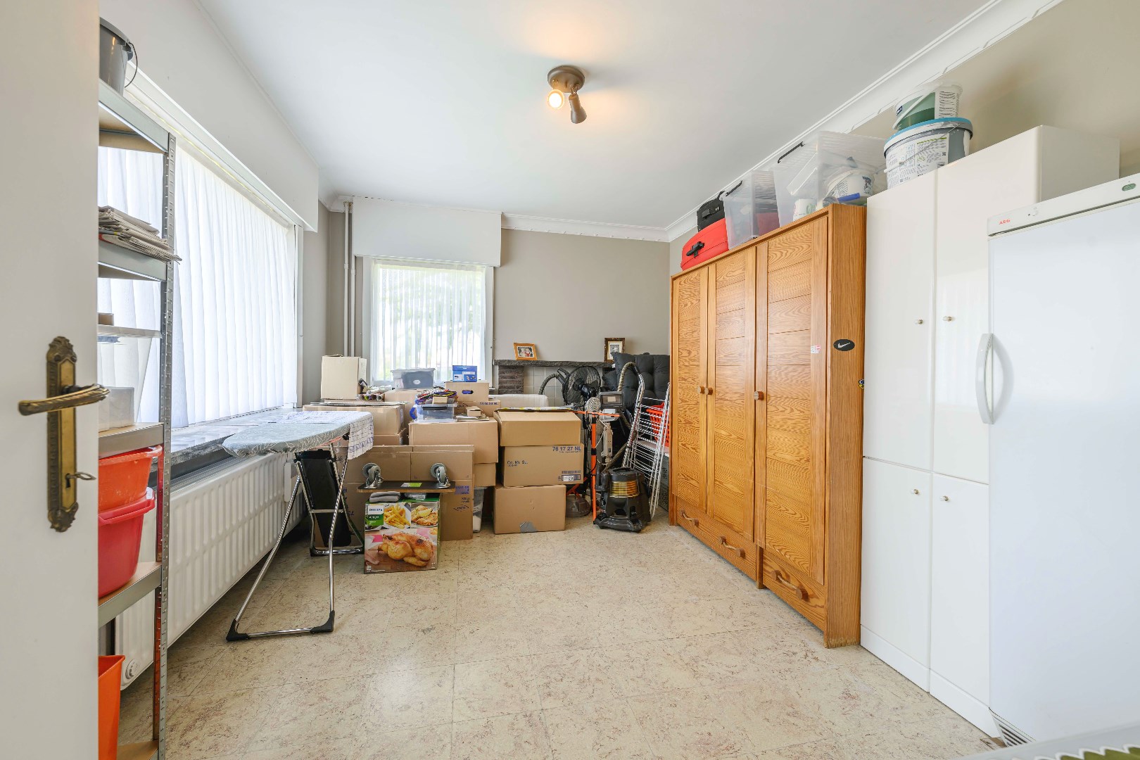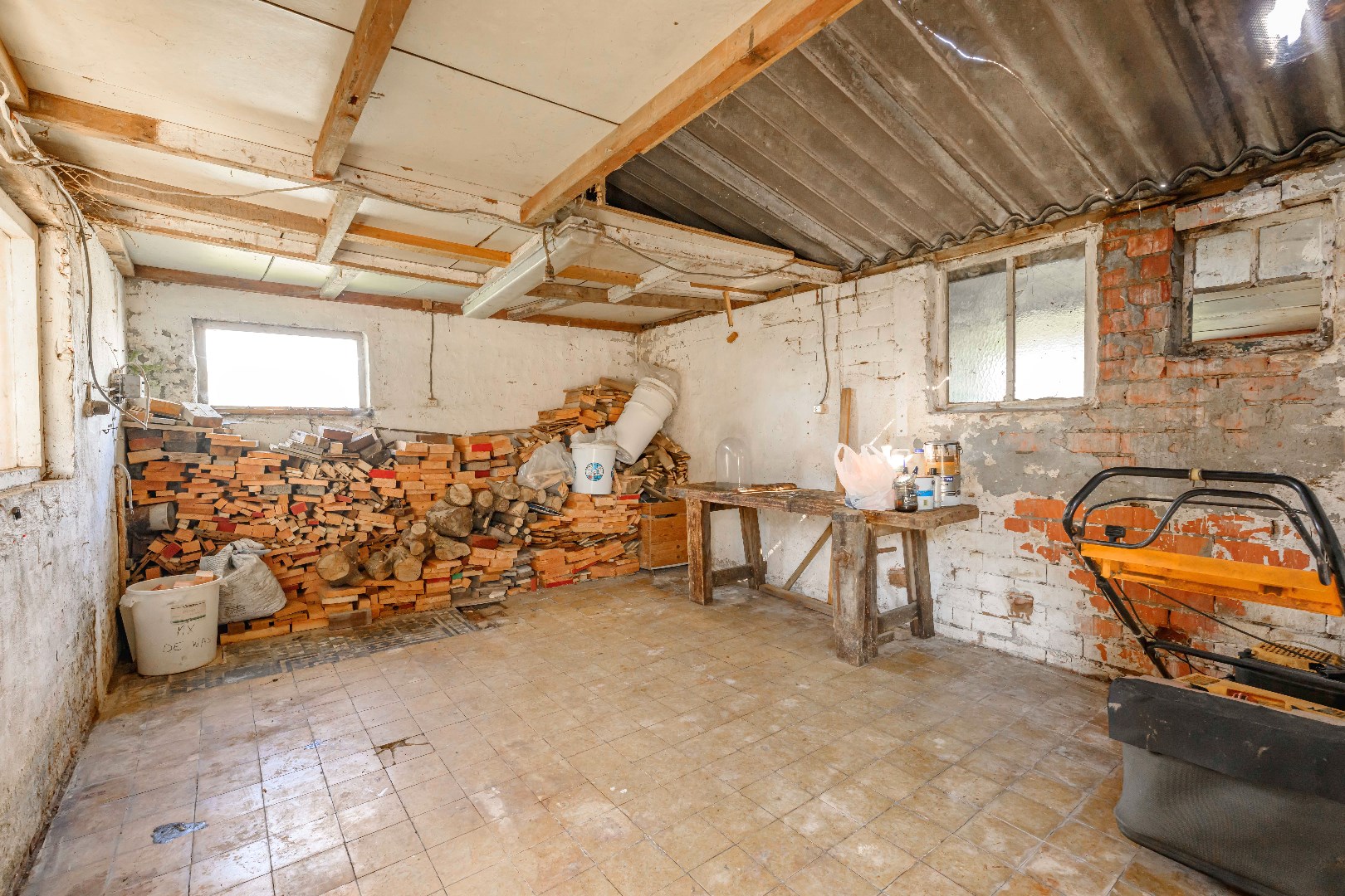 U komt binnen via de inkomhal met links toegang tot de eerste slaapkamer (16 m²) en toegang tot de kelder (6 m²). Verder is er toegang tot de lichtrijke leefruimte (25 m²) voorzien van een gezellige open haard. Aansluitend is er de ruime keuken (kookplaat | dampkap | oven | spoelbak | frigo) met eethoek (29 m²) en houtkachel en directe toegang tot de tuin. Terug in de hall is er nog een apart toilet, de badkamer (douche | lavabo met meubel) met aansluiting voor wasmachine en droogkast en de tweede slaapkamer (15 m²).