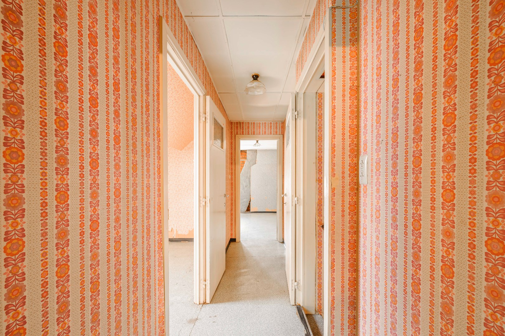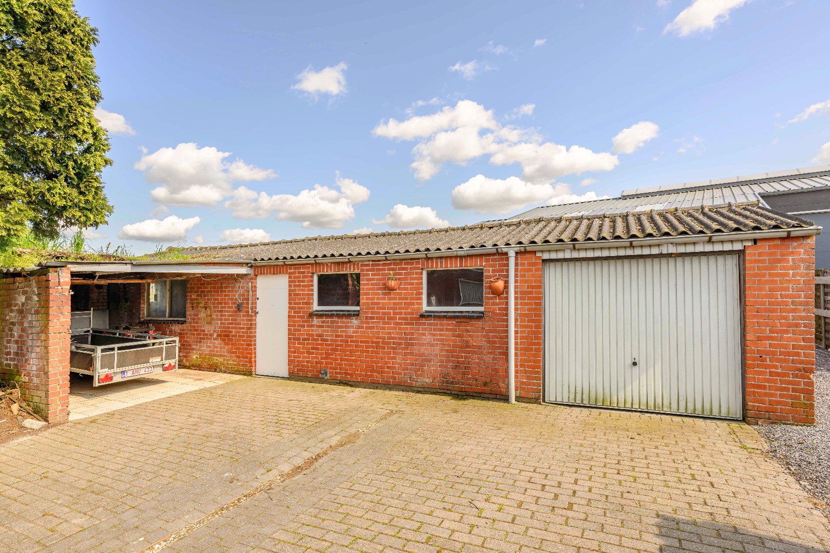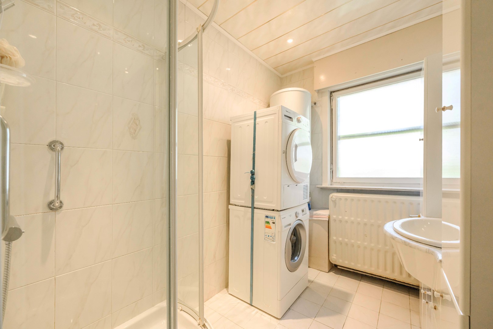 U komt binnen via de inkomhal met links toegang tot de eerste slaapkamer (16 m²) en toegang tot de kelder (6 m²). Verder is er toegang tot de lichtrijke leefruimte (25 m²) voorzien van een gezellige open haard. Aansluitend is er de ruime keuken (kookplaat | dampkap | oven | spoelbak | frigo) met eethoek (29 m²) en houtkachel en directe toegang tot de tuin. Terug in de hall is er nog een apart toilet, de badkamer (douche | lavabo met meubel) met aansluiting voor wasmachine en droogkast en de tweede slaapkamer (15 m²).