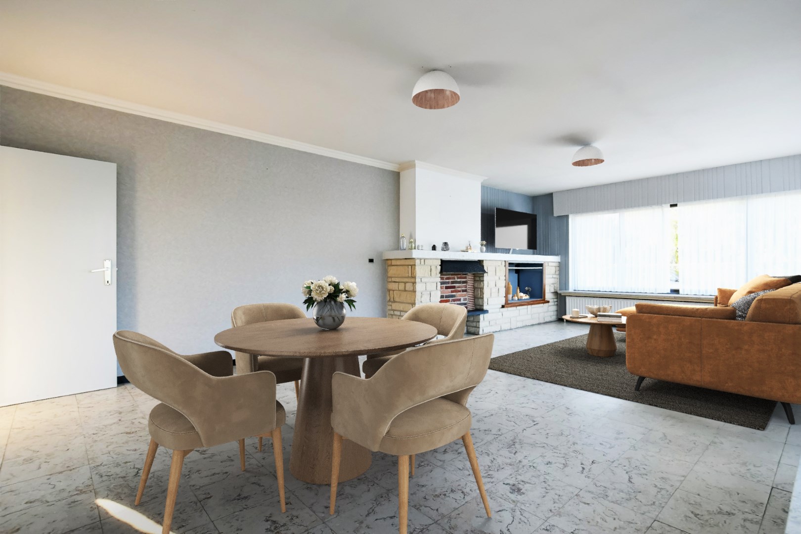 U komt binnen via de inkomhal met aansluitend de lichtrijke leefruimte. Verder is er de ingerichte keuken (kookplaat | dampkap | spoelbak | oven | frigo) van hieruit is er toegang tot de ruime inpandige garage, wasplaats met aansluiting voor wasmachine en droogkast en de berging met apart toilet.
