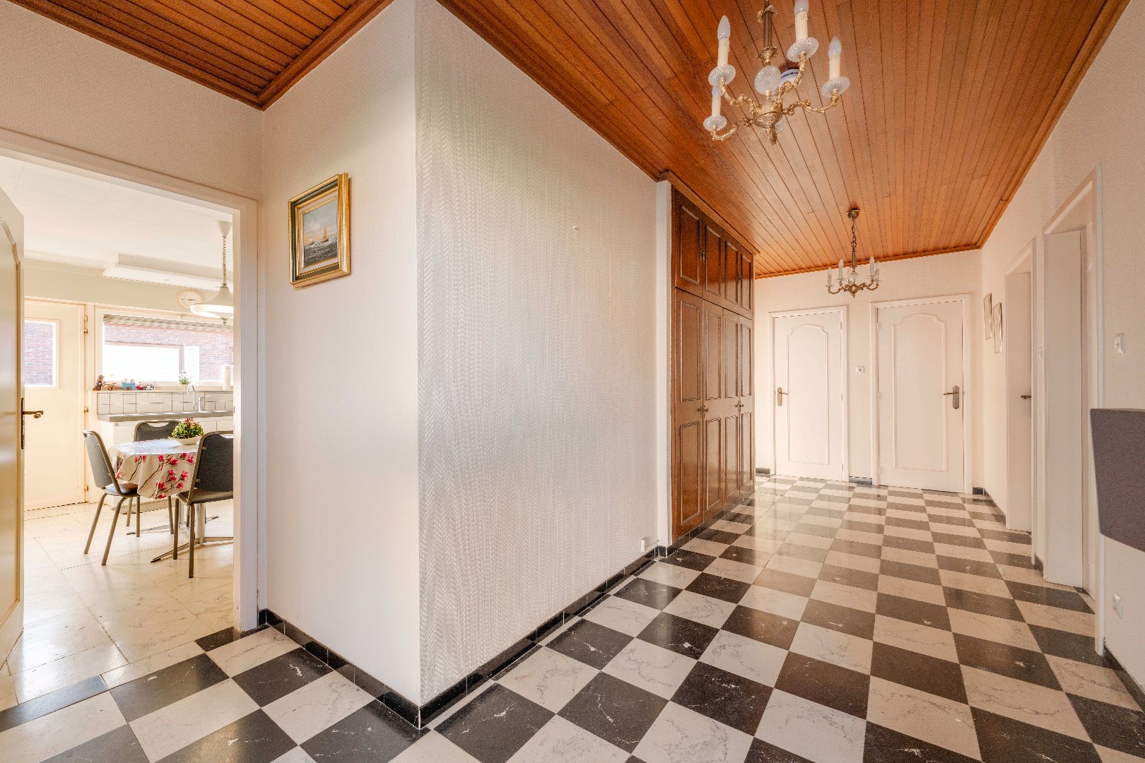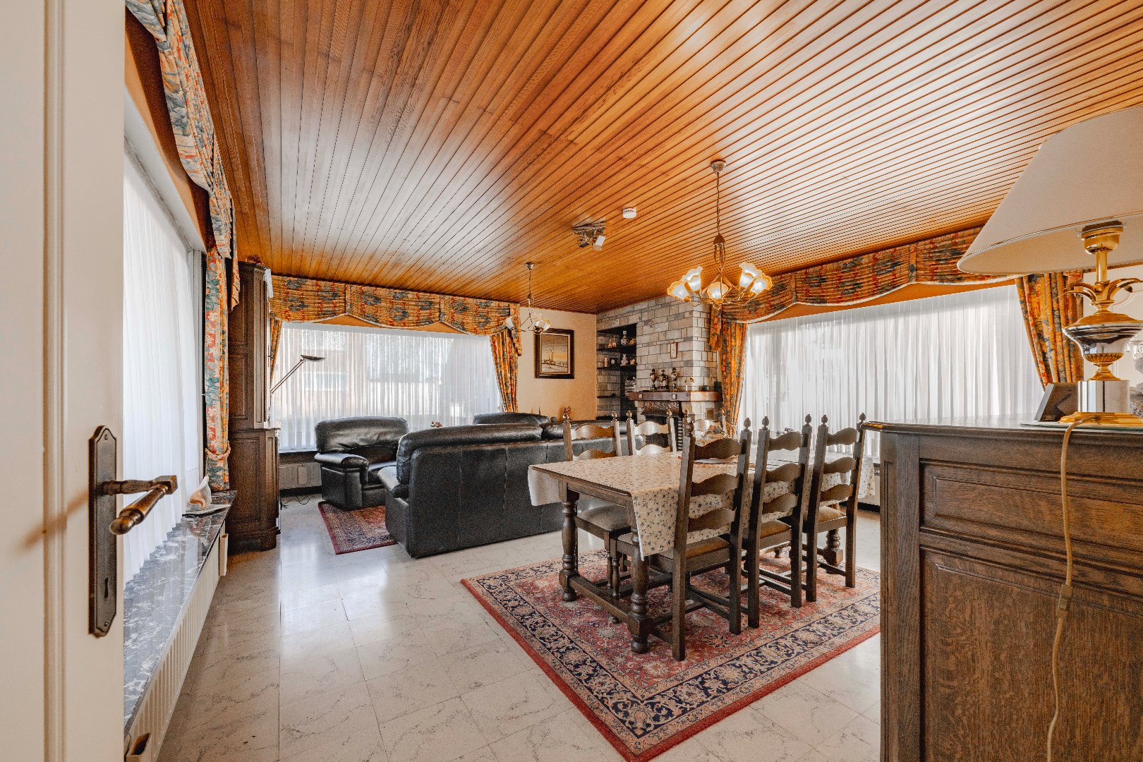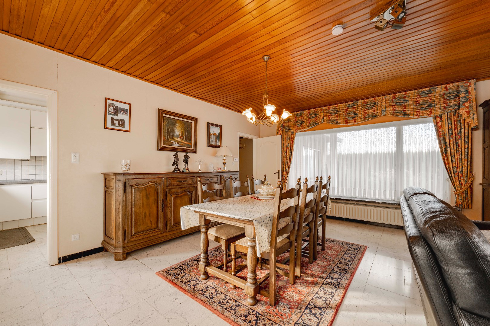 U komt binnen via de ruime inkomhal met praktische ingemaakt kasten en apart gastentoilet. Verder is er directe toegang tot de ruime leefruimte (37 m²) met gezellige houtkachel. Aansluitend is er de gesloten ingerichte keuken 12 m² (kookplaat | dampkap | dubbele spoelbak | frigo | oven), handig is de koele berging en ruime wasplaats.