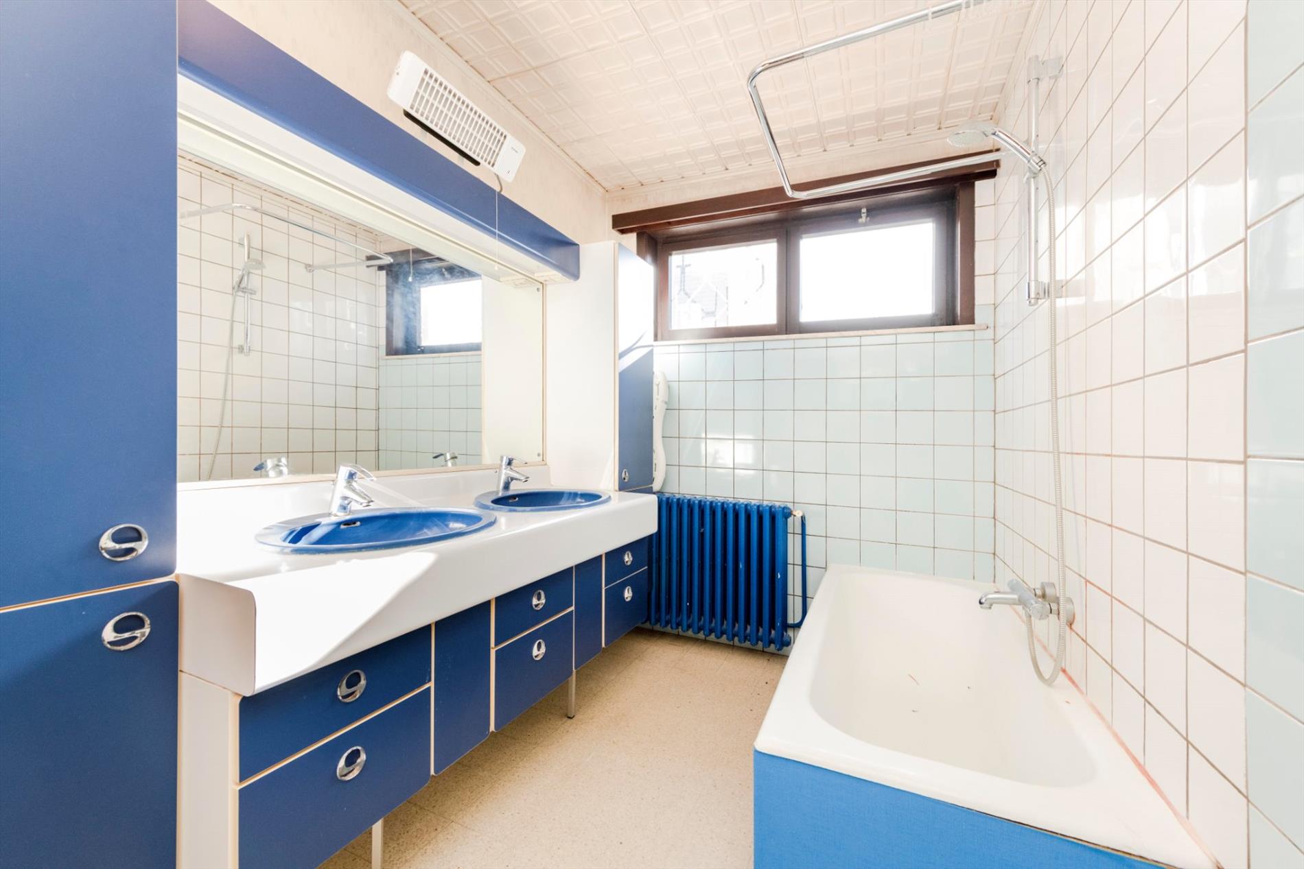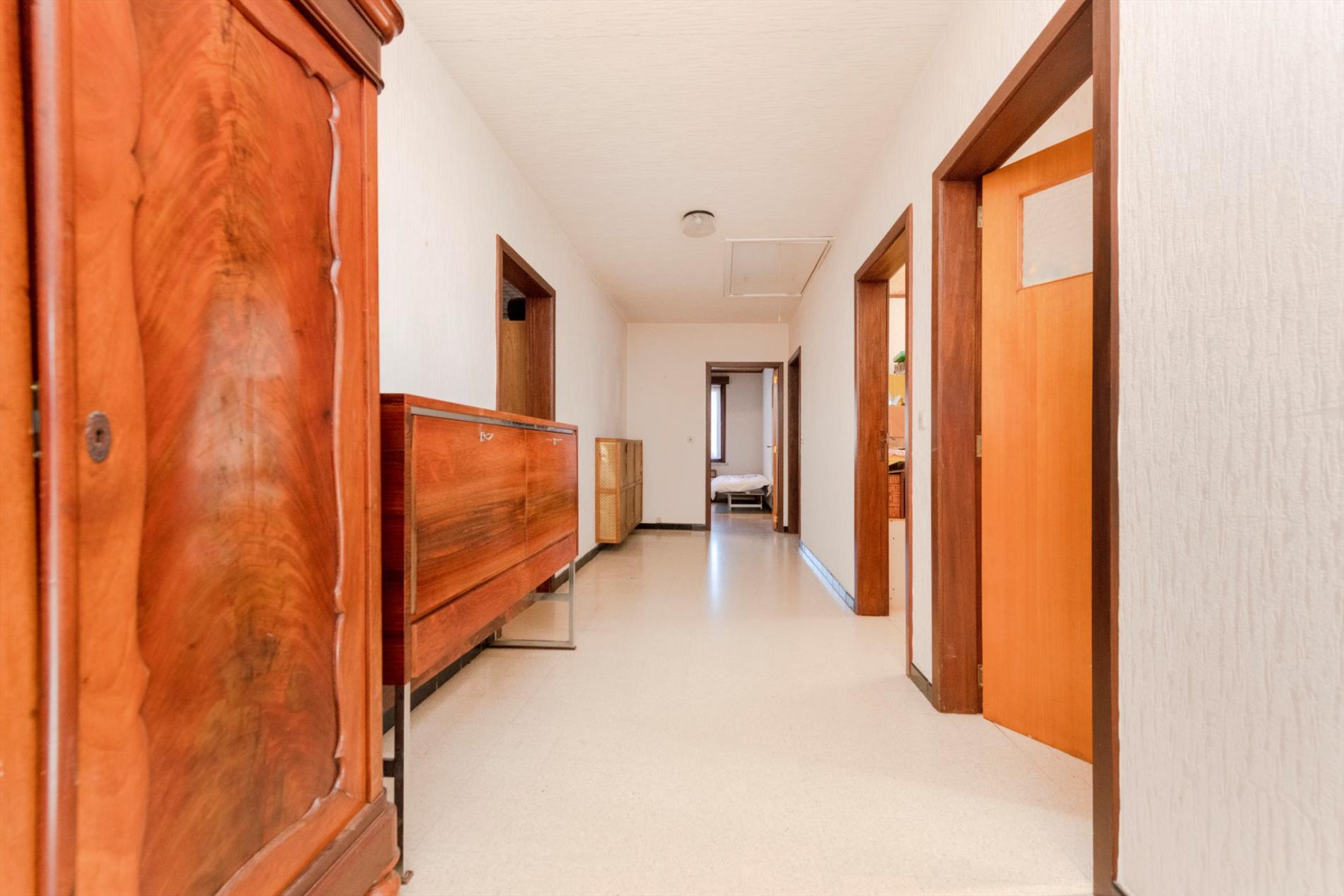 De nachthall is gelegen centraal in de woning met toegang tot vier slaapkamers met een oppervlakte van 10,85 m² | 11,34 m² | 17,33 m² en 18,40 m². Daarnaast is er nog een bureau of 5de slaapkamer met een oppervlakte van 15,12 m². D badkamer is voorzien van ligbad, toilet en dubbele lavabo met meubel, alsook aansluitingen voor wasmachine en droogkast.