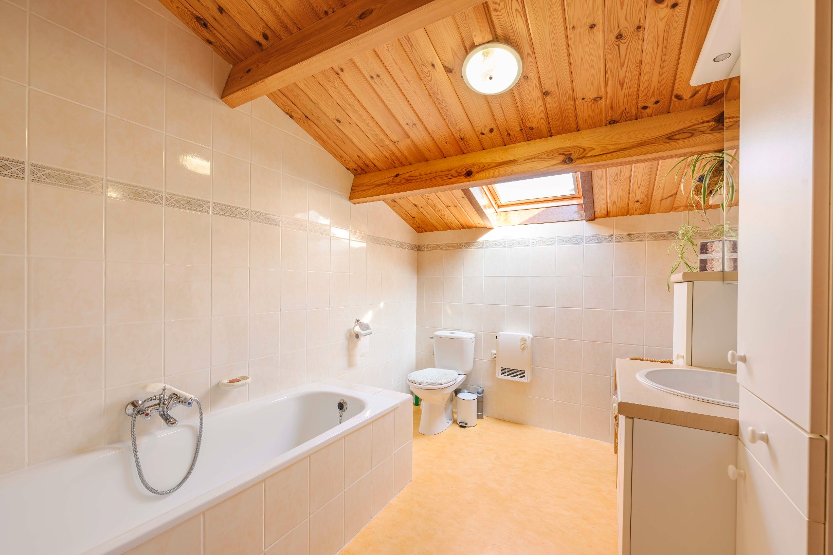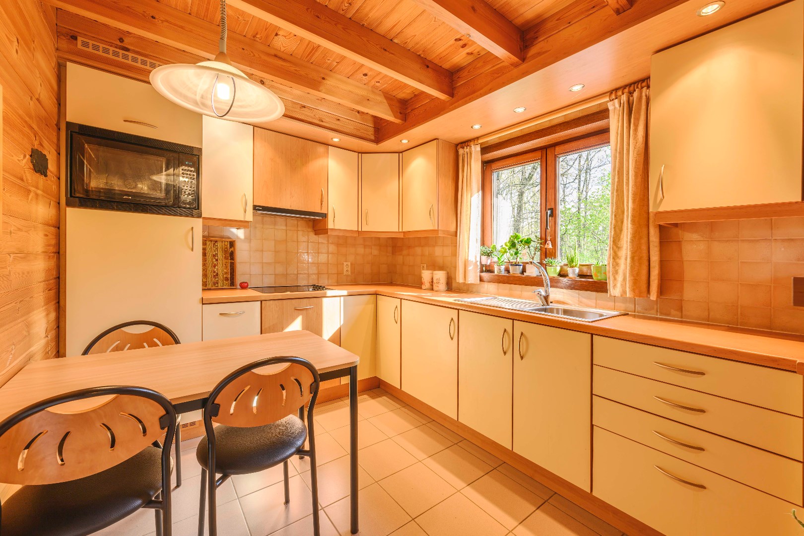 Aansluitend de open ingerichte keuken (kookplaat | dampkap | spoelbak | oven | frigo). Praktisch is de berging met aansluiting voor wasmachine en droogkast.