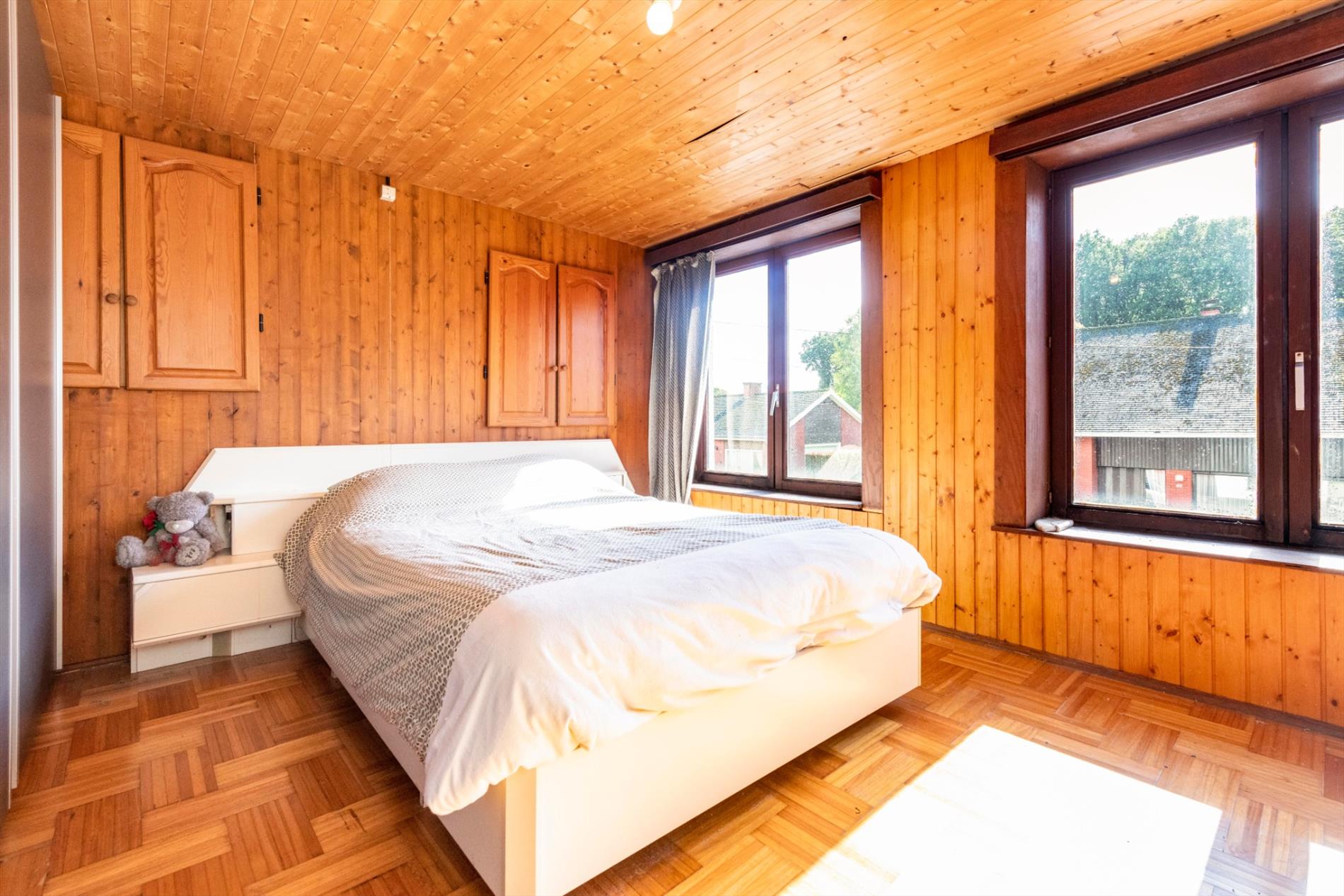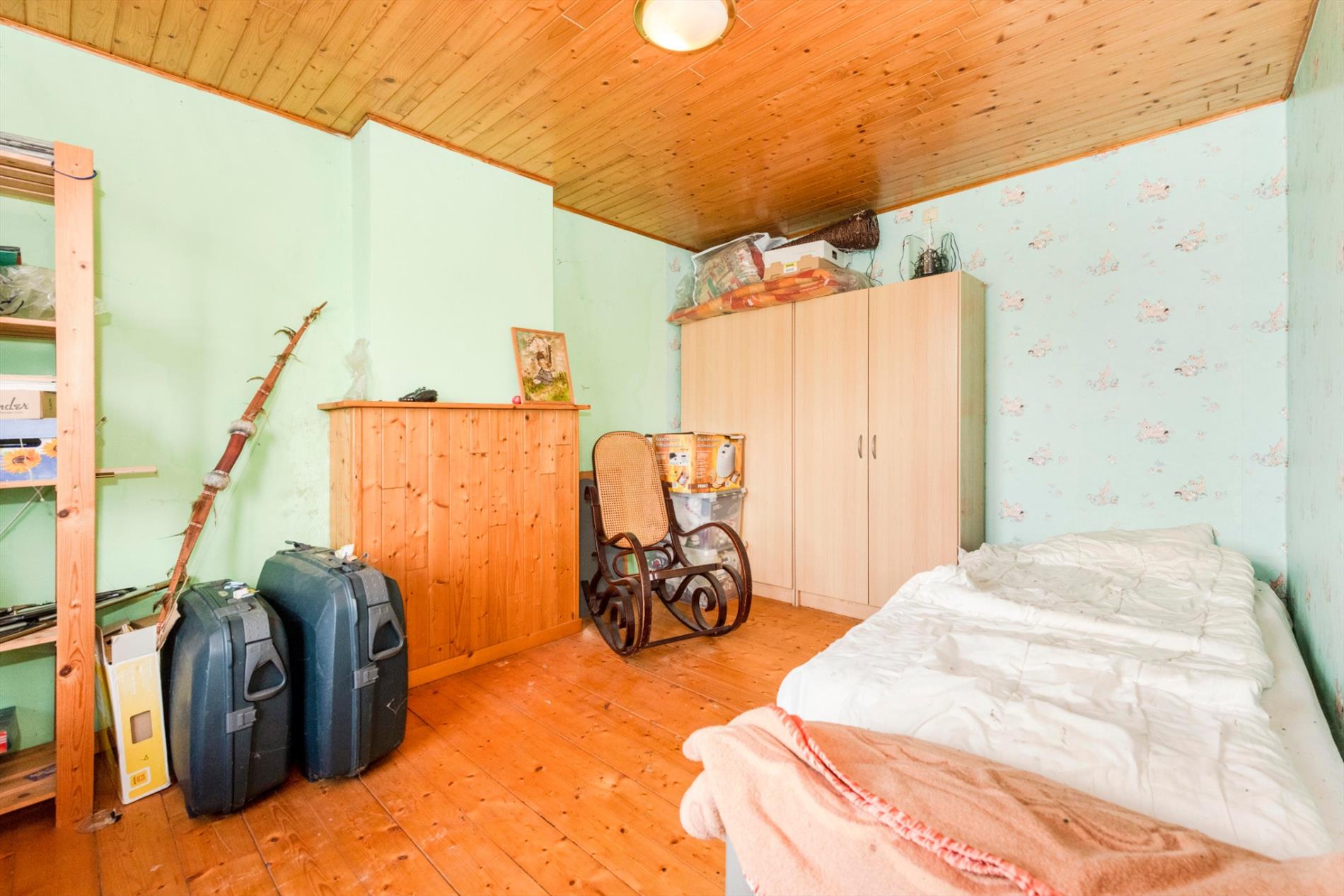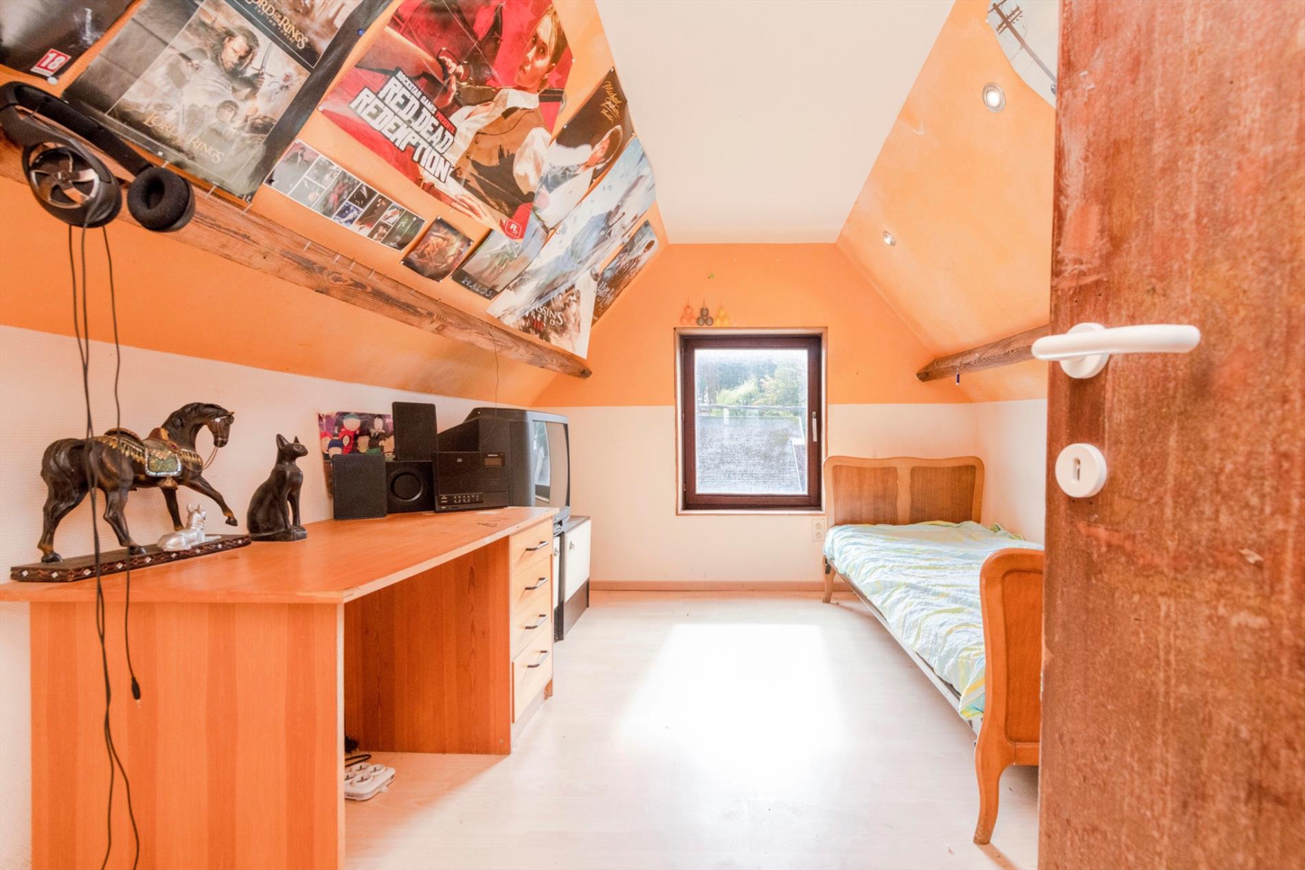 Op het eerste verdiep is er een overloop die toegang biedt tot 2 ruime slaapkamers voorzien van een authentieke parketvloer. Tot slot is er de zolderruimte, deze is toegankelijk met een vaste trap en is opgedeeld in 2 delen waarvan 1 reeds werd ingericht als derde slaapkamer.