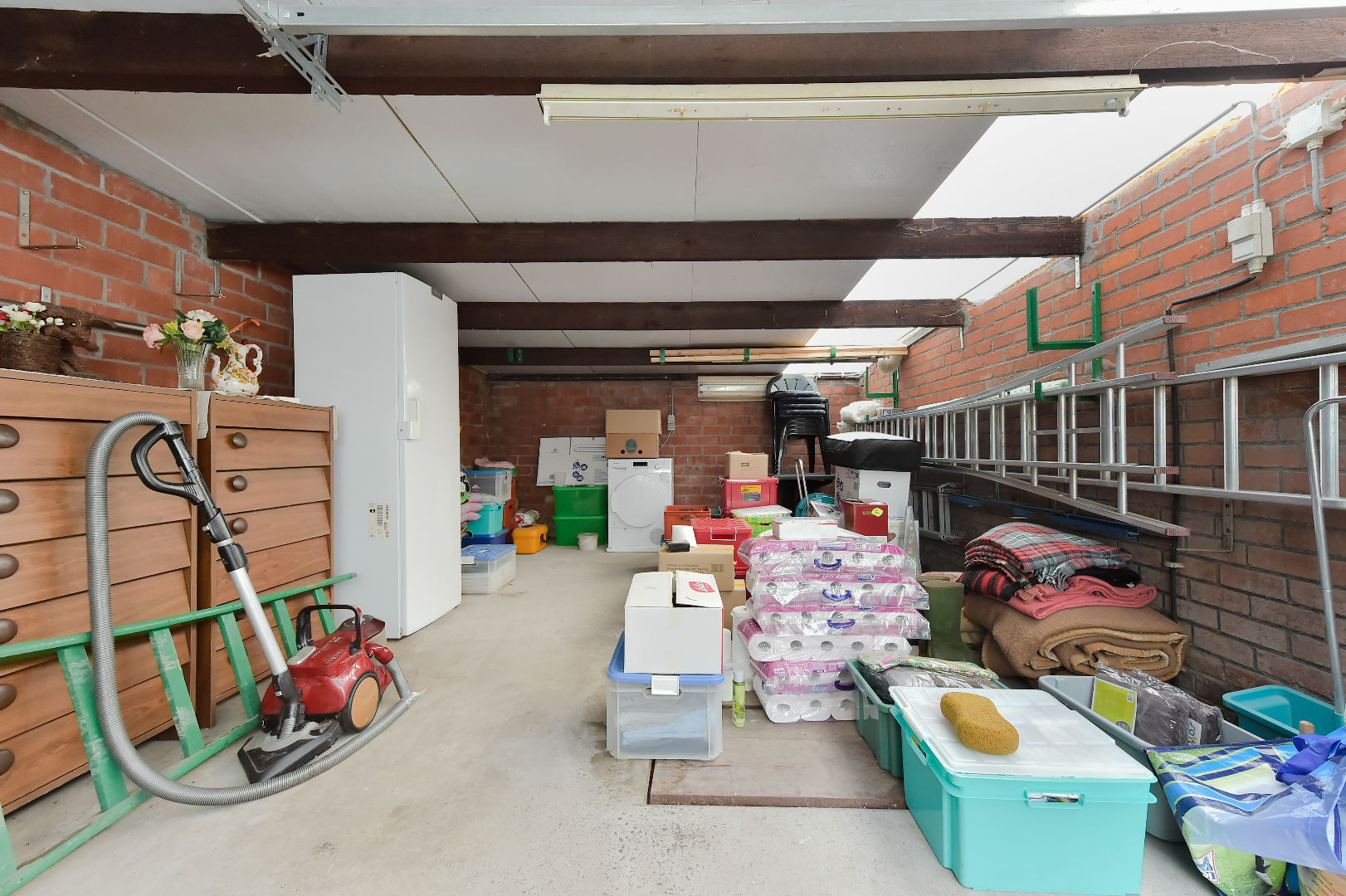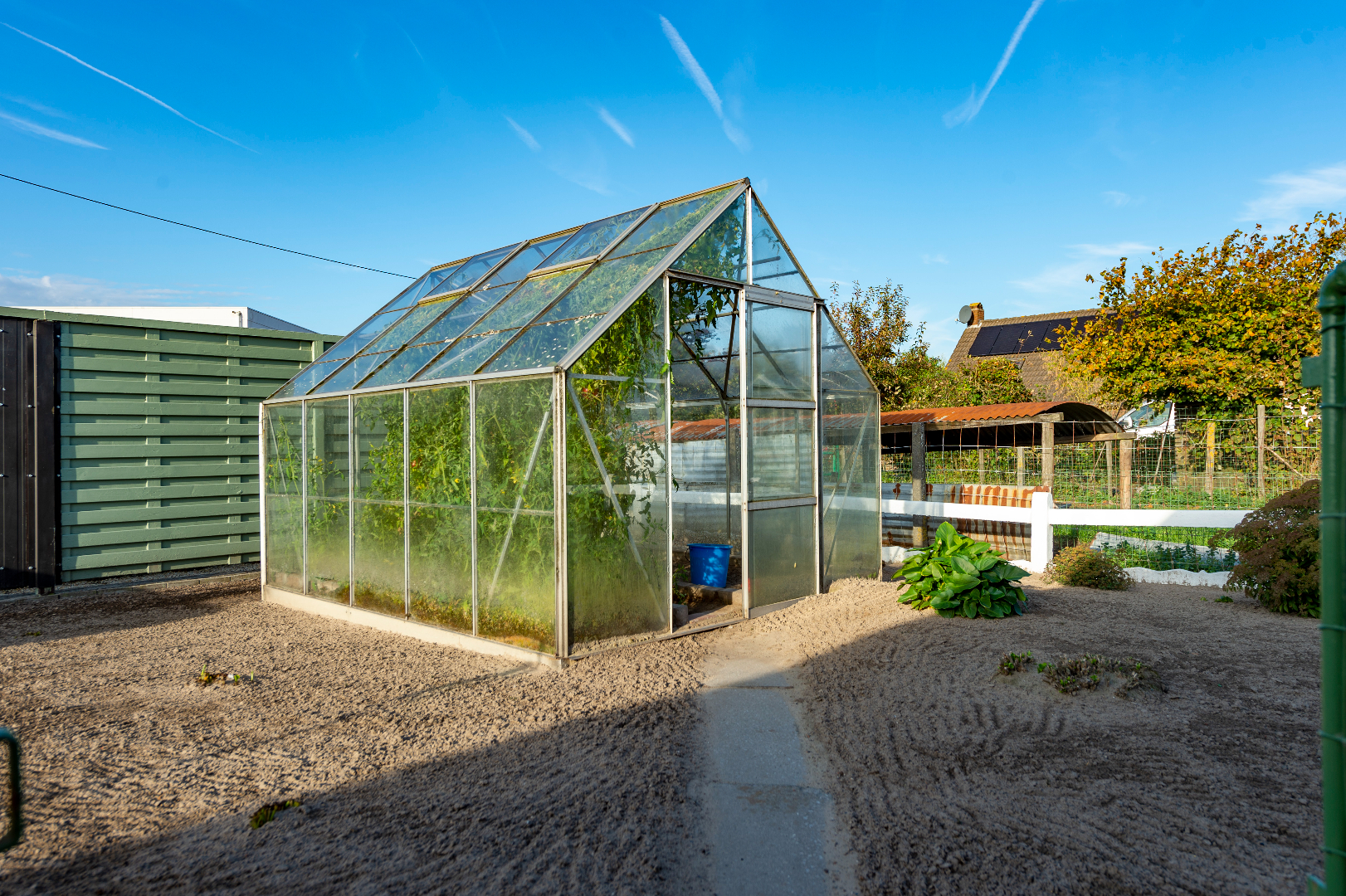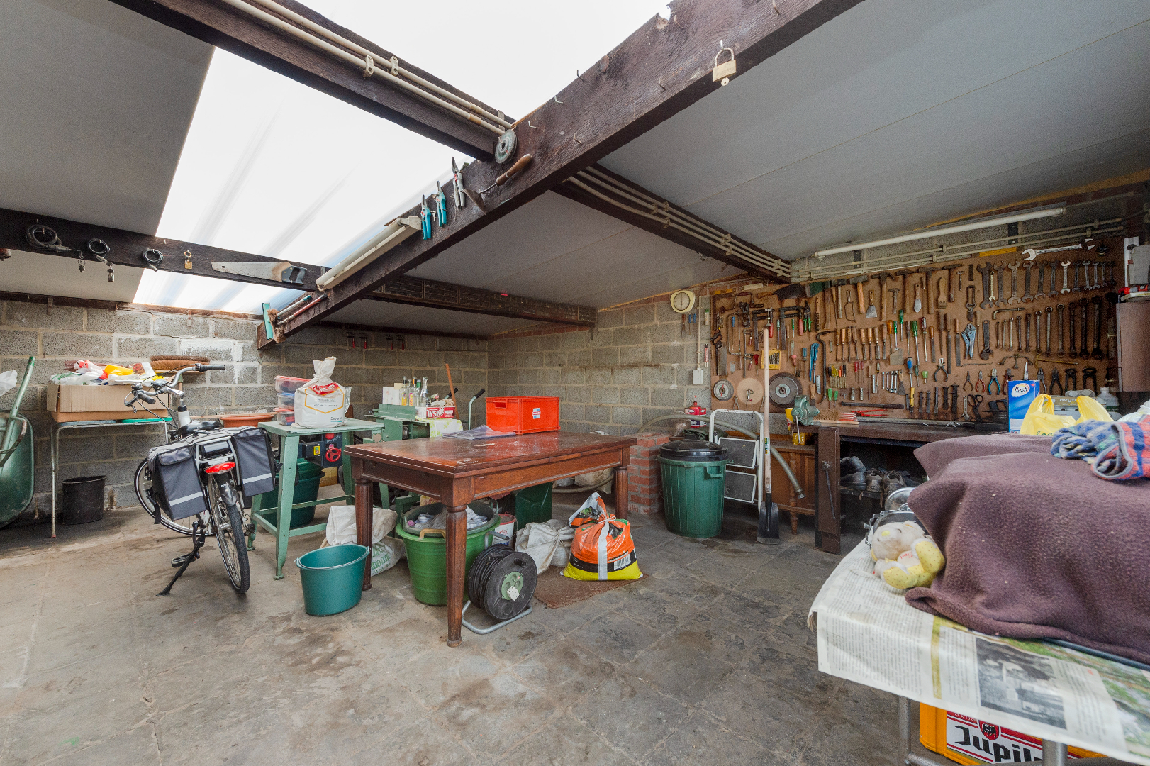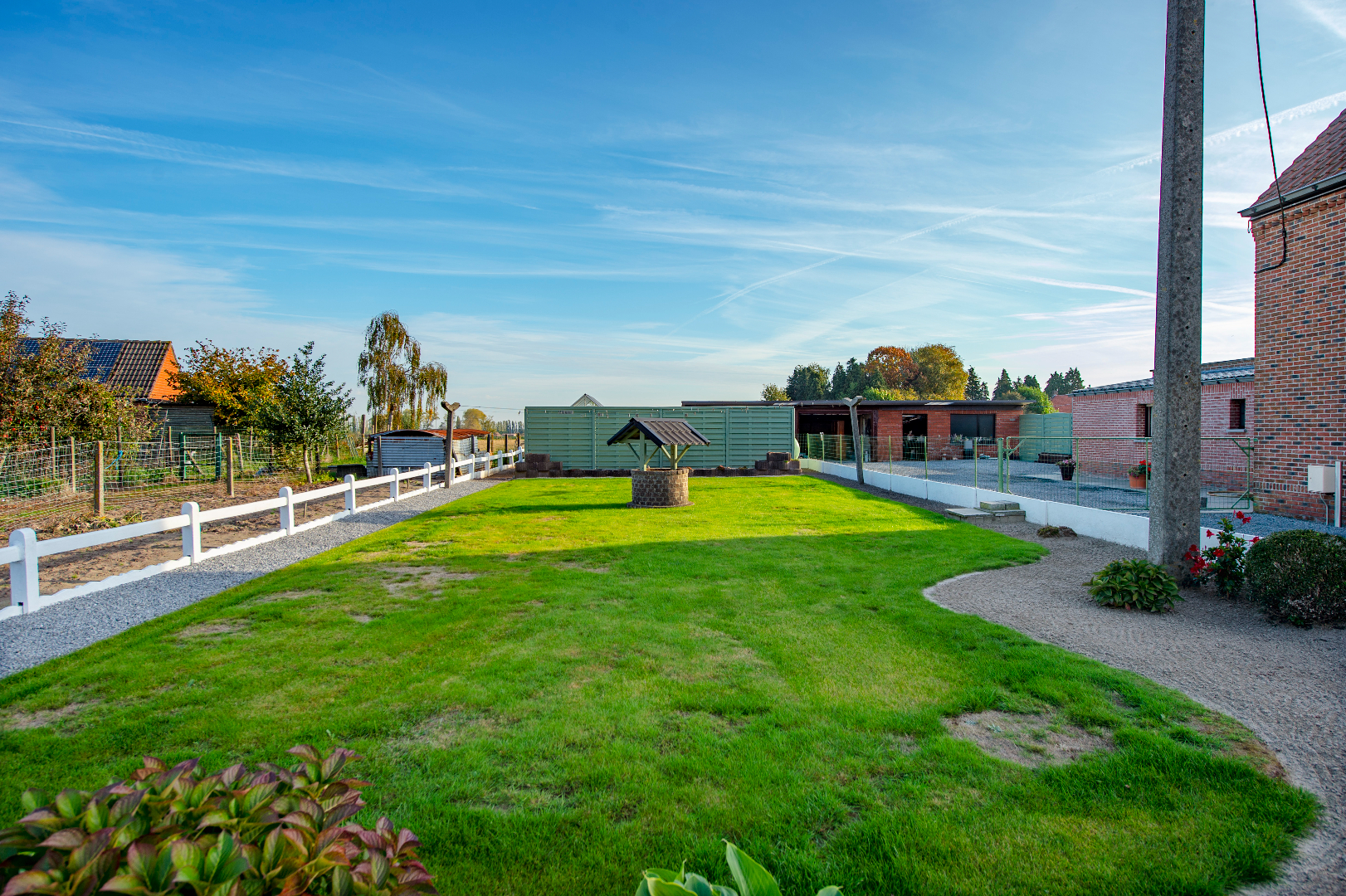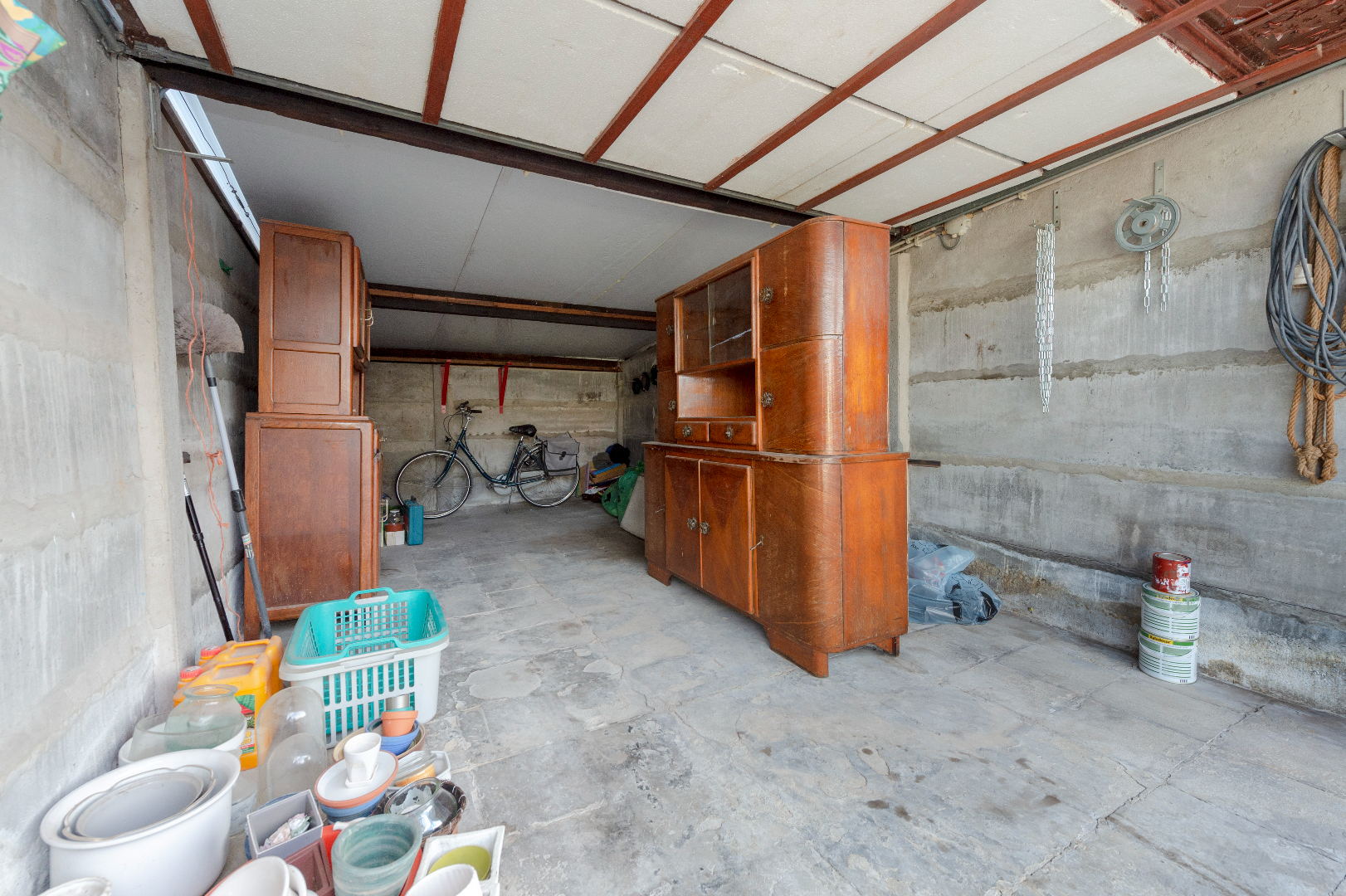De eigendom beschikt over een verzorgde tuin, volledig afgesloten en ingevolge kindvriendelijk. Verder is er nog voldoende parkeergelegenheid een ruime tuinberging en een serre. De woning beschikt ook nog over 2 ruime garages met handmatige poorten.