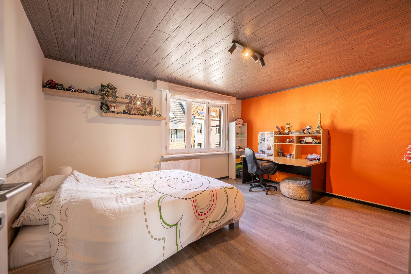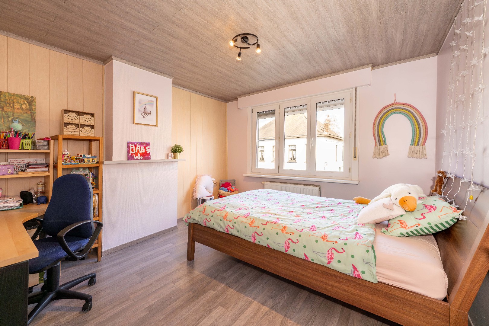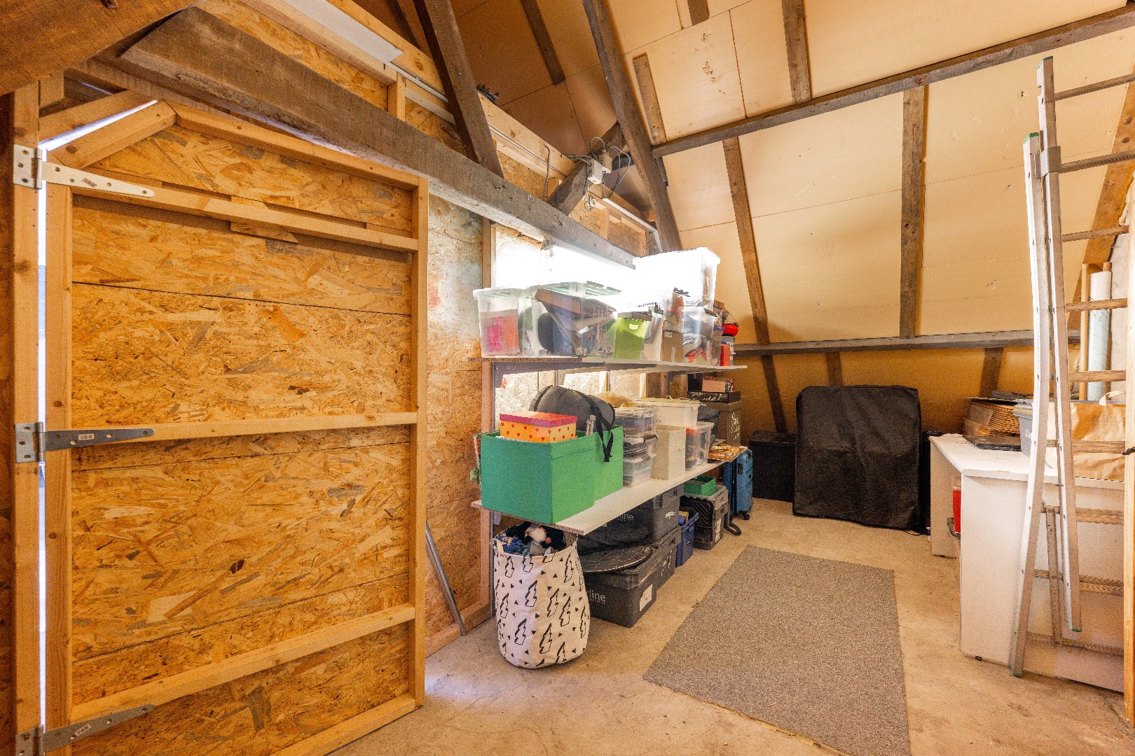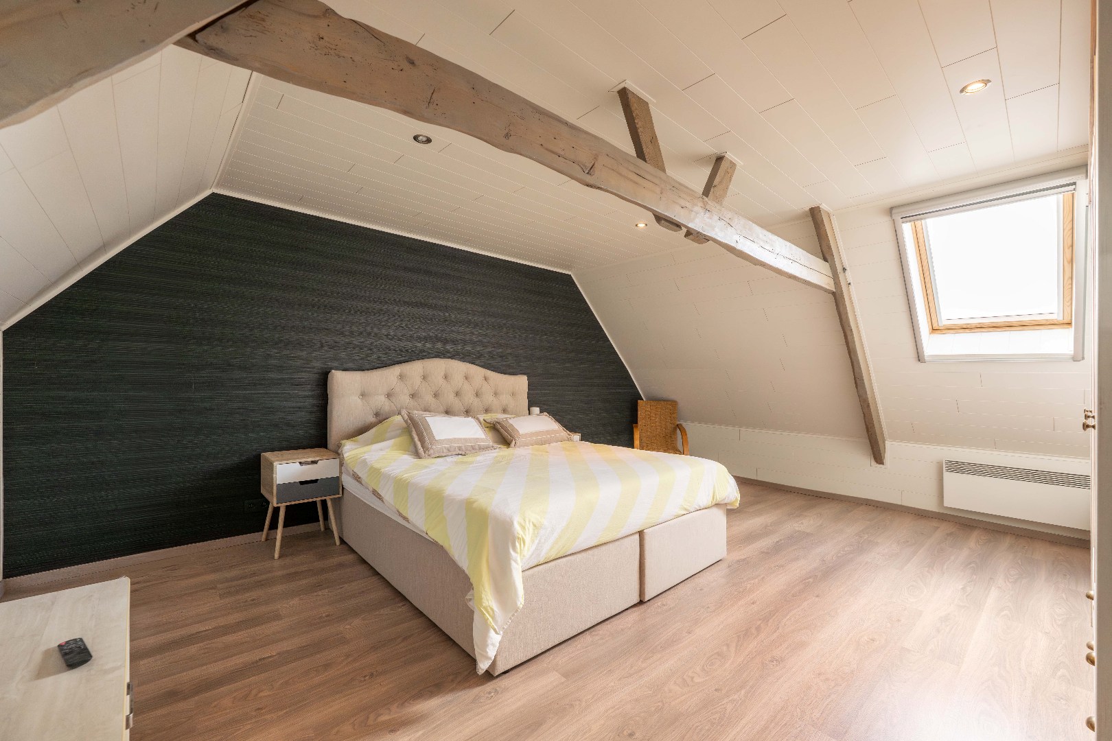 Tot slot is er nog de dakverdieping te betreden via een vaste trap. Dit verdiep is opgesplitst met rechts de vierde slaapkamer en links een stockageruimte/zolder.
