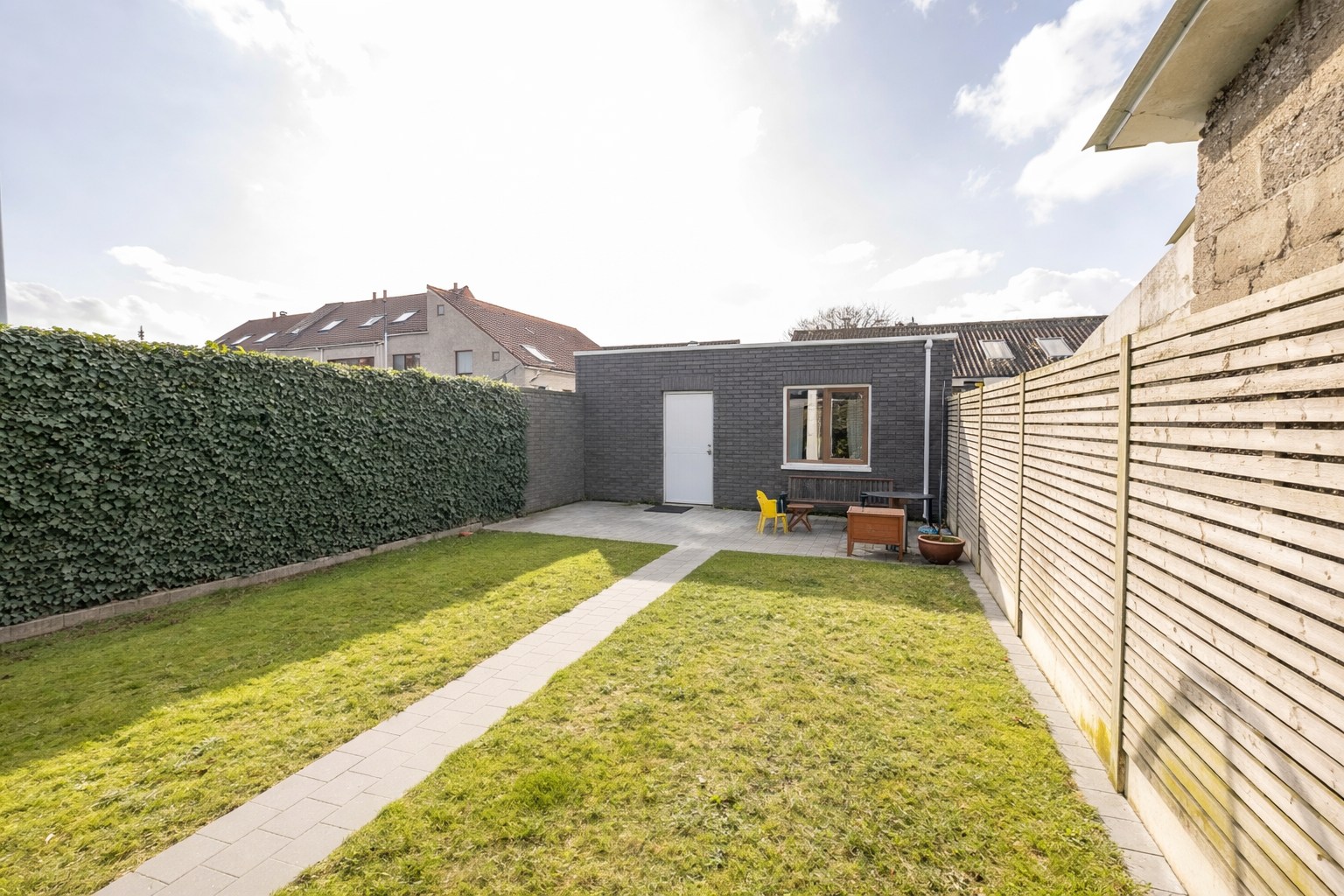 Via de Vlaanderenlaan is er toegang tot de GARAGE VAN 48 m² en geniet U tevens van een volledig afgesloten, kindvriendelijke tuin met diverse sfeervolle terrasjes.